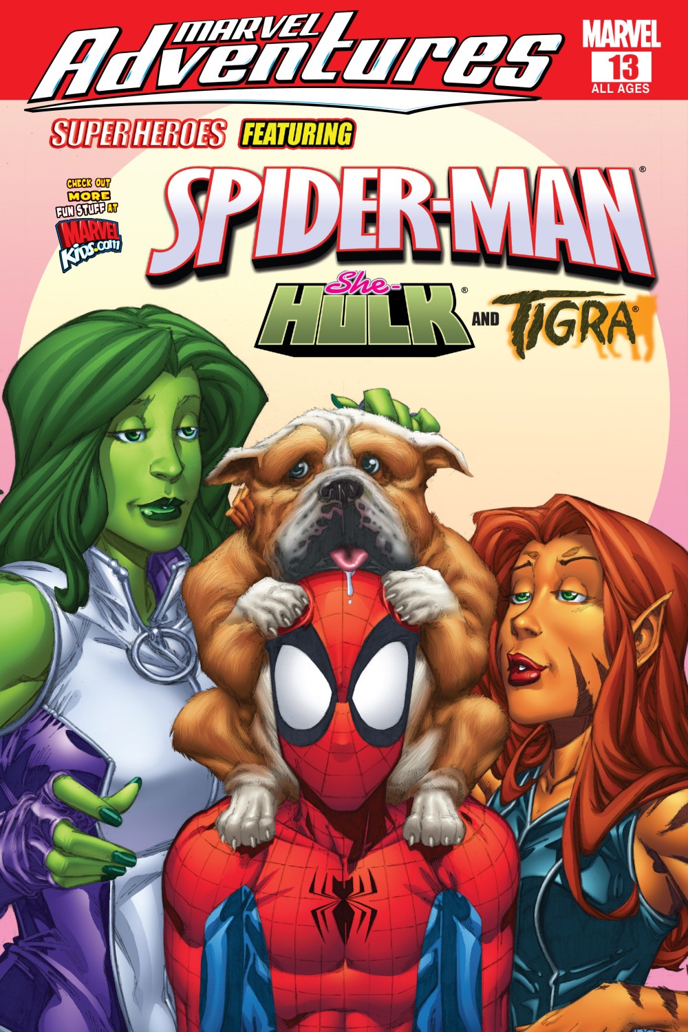 Written by PAUL TOBIN Penciled by MARCELO DICHIARA Cover by PATRICK SHERBERGER Bulldogs are about the best dogs in the world. Everyone knows that. But when the Leader decides to use a robotic bulldog to steal all of SHIELD's private files, it's up to She-Hulk, Spider-Man and Tigra to clean up after the dog! 32 PGS./All Ages ?$2.99 |