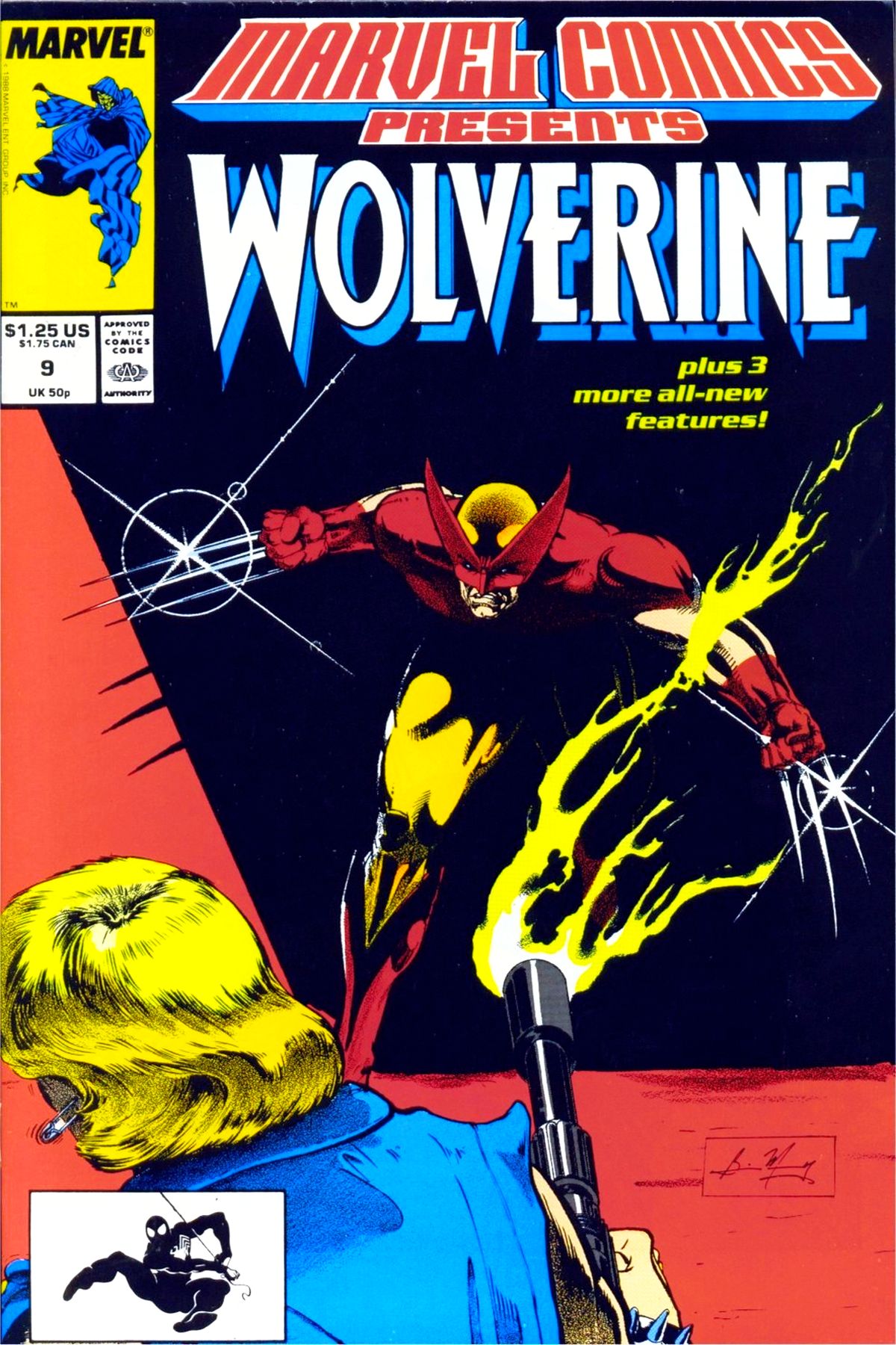The Confrontation - Twelve weeks (6 issues) ago, Razorfist tried his best to kill Wolverine. Now it's Wolvie's turn. Breaking Faith - The attack by Lloyd Zahner and his mercenaries on Marea and her cultists has ended in disaster, with Monteiro dead and Zahner himself grotesquely disfigured by the cauterizing touch of the Man-Thing. For Marea, these events augur the coming of her Master's kingdom, the reign of Perfect Chaos on earth. The cultists, with prisoners Zahner and reporter Mickey Ditillio in tow, have begun a torchlight procession to the swamp for the final ritual to invoke the Master - unaware that from Washington, D.C. Colonel Jody Coate has personally ordered their destruction. In the Dark - A teenaged runaway whose latent abilities were twisted by involuntary injections of a synthetic drug - he became a living doorway to darkness and keeper of the demon within. A Piece of Cake - As a child, Alejandro Montoya stood in helpless horror as his parents dies while defending him against a mob of mutant haters. As an adult, the costumed El Aguila (The Eagle) seeks to prove himself wothy of their sacrifice. All plot summaries taken from the table of contents of the issue itself. |