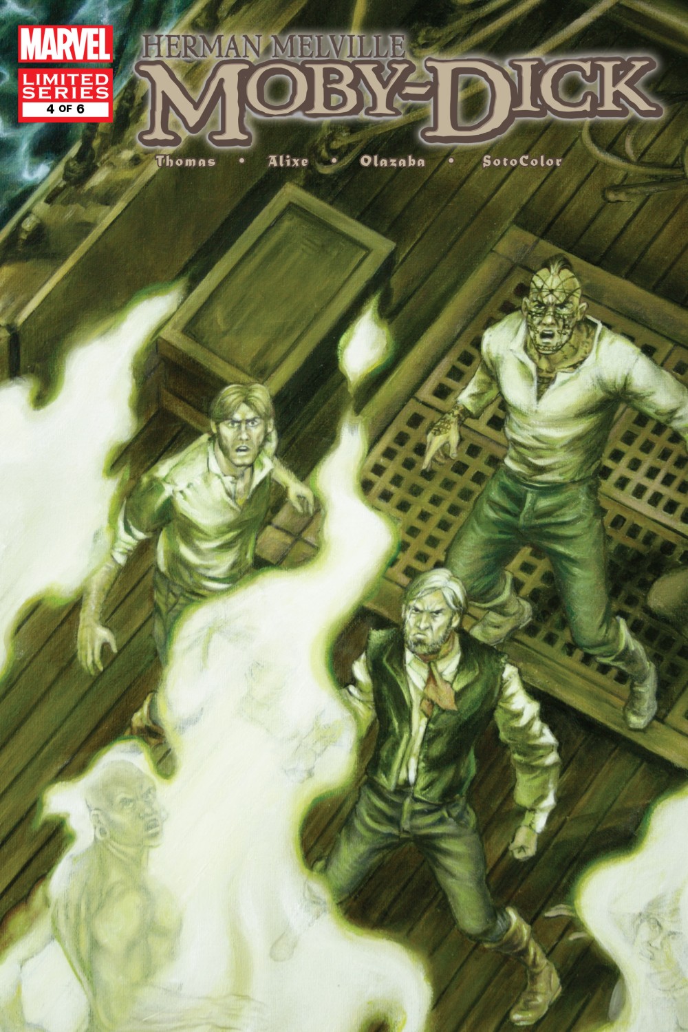 Written by ROY THOMAS (BASED ON THE NOVEL BY HERMAN MELVILLE) Penciled by PASCAL ALIXE Cover by JOHN WATSON While Captain Ahab feels the Pequod is on the verge of finding the elusive White Whale, some in the crew have reached their limit with the secretive and obsessed captain and contemplate his grisly end. Emerging from a sudden and monstrous typhoon which nearly capsizes the ship, Ahab glimpses at last the monster that has haunted his very existence, the leviathan of the deep, Moby Dick! 32 PGS./Parental Advisory ?$2.99 |