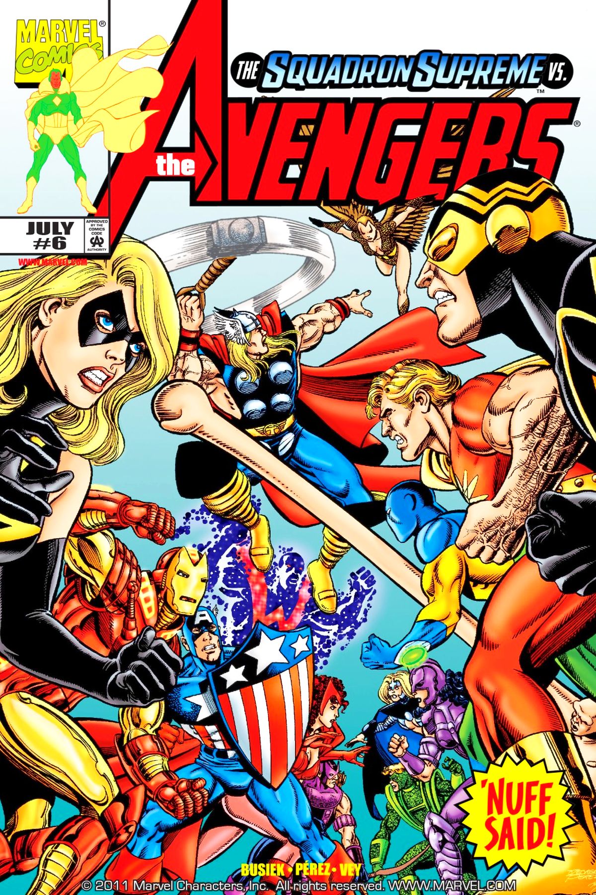 The Avengers head to Project Pegasus headquarters to determine what's going on with the Squadron Supreme. They start to uncover the mystery, but soon find themselves attacked by the Squadron once more. Can they beat the S.S. on their home turf? |
