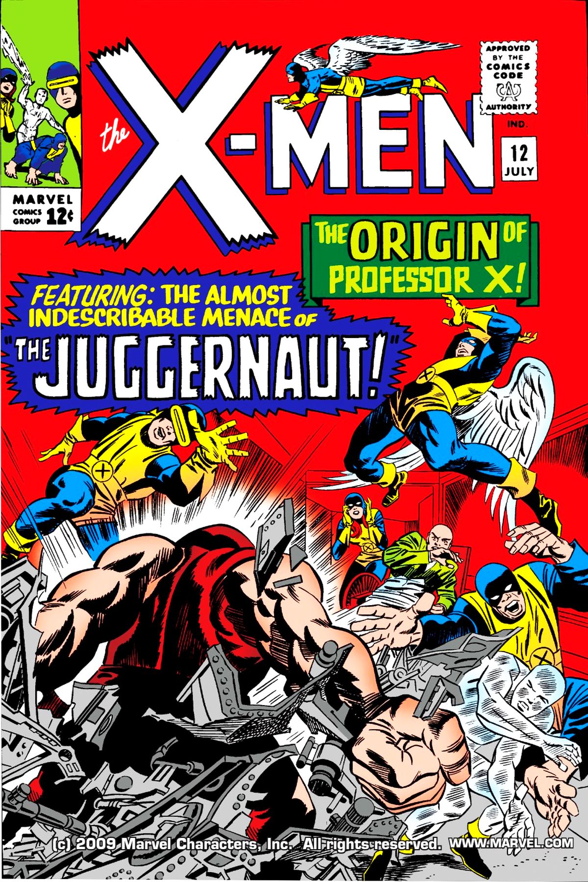 The alarm on Cerebro has been wailing wildly, warning of an incredibly powerful threat close by. That threat is Professor X's step-brother, Cain Marko. While he slowly penetrates the mansion's defenses, Professor X tells the story of his father's death in a nuclear accident, how his father's partner married his mother in search of her wealth and power, and how his viscious step-brother came into the picture, becoming the unstoppable Juggernaut when he found the Ruby of the Cyttorak. (Dr. Strange fans: yes, THAT Cyttorak.) Xavier completes his tale just in time for the Juggernaut to break into the mansion through all of its defenses. |