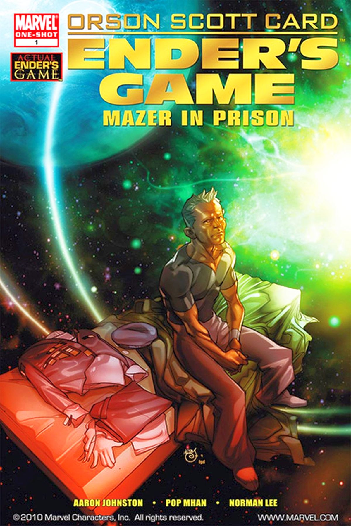 Creative Director ORSON SCOTT CARD Written by AARON JOHNSTON Pencils and Cover by PASQUAL FERRY In this one-shot prequel to the award-winning novel Ender's Game, Mazer Rackham, the only man ever to defeat the Formics, takes on a new enemy?the International Fleet itself. Burdened with careerists and bureaucrats, the I.F. is doomed to fail in the coming war, and only Rackham, with the help a young Hyrum Graff, can rid the I.F. of its old guard and pave the way for Earth's next great commander. Adapted from Orson Scott Card's short story, MAZER IN PRISON is a look into the beginnings of the system into which Ender Wiggin found himself thrust. 32 PGS./One-Shot/Parental Advisory ?$3.99 |