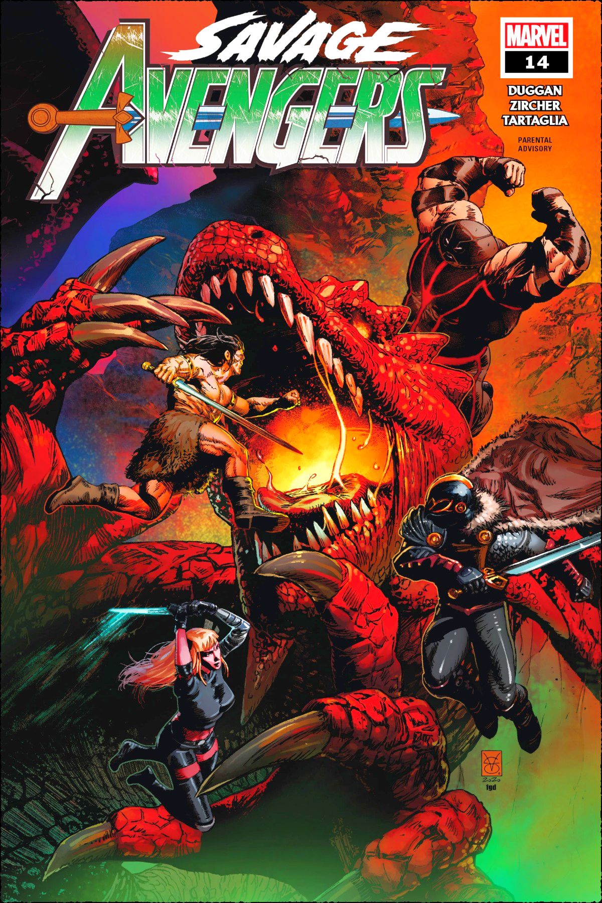Conan leads a team of Savage Avengers against an Asgardian dragon in a quest for treasure. Get out your twenty-sided dice and roll to attack with Conan, Magik and new Savage recruits the Black Knight and Juggernaut!` PARENTAL ADVISORY