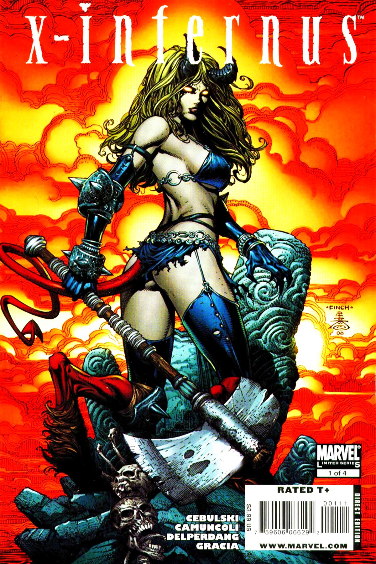 Written by C.B. CEBULSKI Penciled by GIUSEPPI CAMUNCOLI Cover by DAVID FINCH Variant Cover by J. SCOTT CAMPBELL The X-Men promise to make this one of the hottest winters ever! When last we saw Darkchylde, she had claimed the throne of Limbo as her own. And now she's determined to get her soul back, even if she has to conquer Earth in the process. Can the combined forces of the X-Men stop her rampage? They'll have to fight through every demon in Limbo to try. 32 PGS./Rated T+ ?$3.99