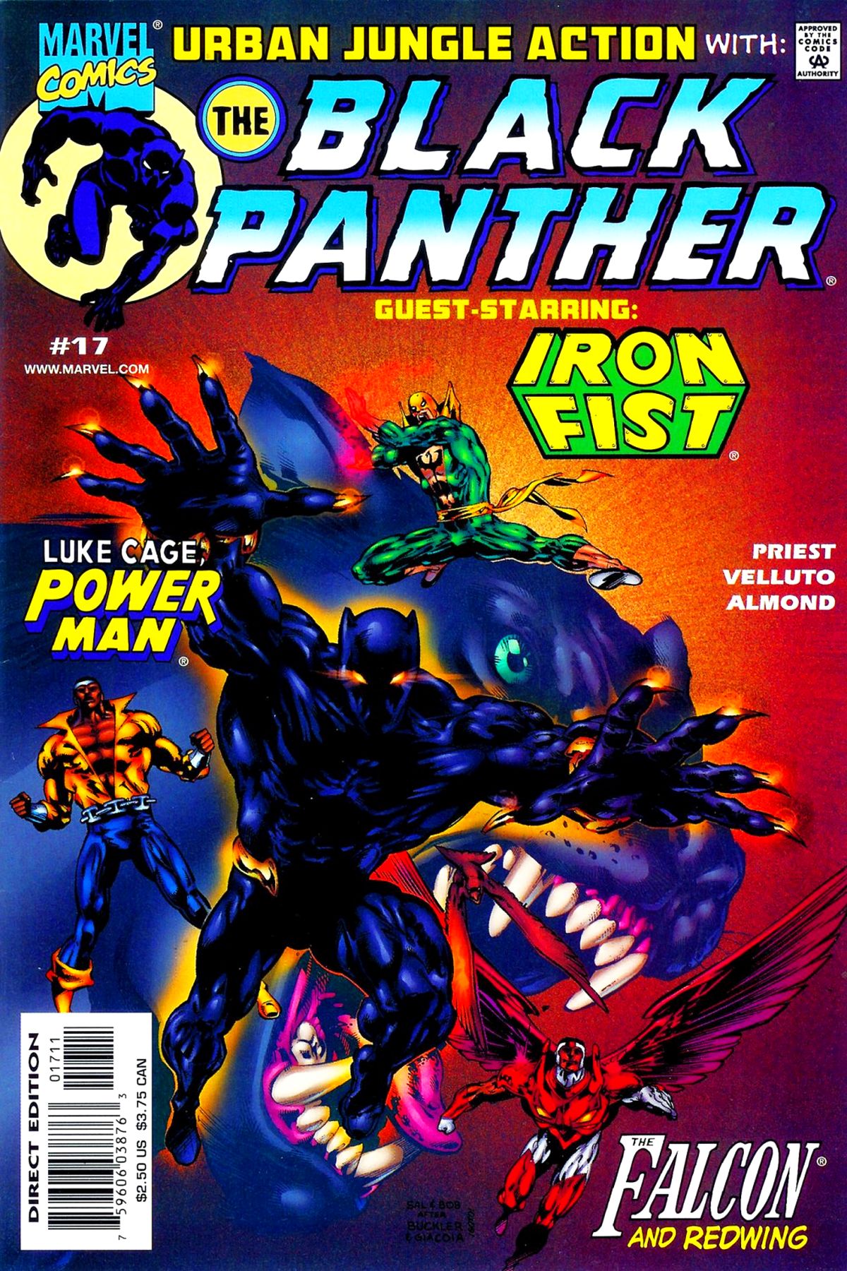 Guest-starring the Heroes for Hire! Killmonger and Boss Morgan are determined to tear apart Harlem. Black Panther joins Iron Fist, Power Man, Misty Knight and Falcon to protect the streets. But can T’Challa stand to defeat his own brother? |