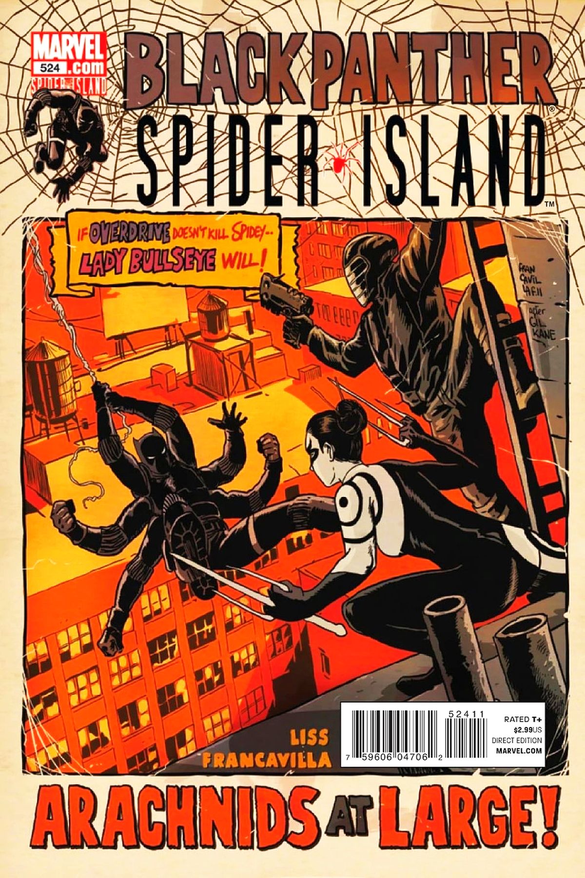 Written by DAVID LISS Pencils & Cover by FRANCESCO FRANCAVILLA SPIDER-ISLAND TIE-IN! First it was American Panther, now it's?Six-Armed Panther? The arachnid infection griping Manhattan hits T'Challa, but that doesn't mean he'll stop trying to protect Hell's Kitchen! And when Overdrive breaks into the quarantine zone, your friendly neighborhood Spider-Panther swings into a deadly race across the streets of New York City. What has the Spidey villain stolen that's worth smashing through a hero-protected border, and why is the lethal Lady Bullseye trying to keep him from getting back out? 32 PGS./Rated T+