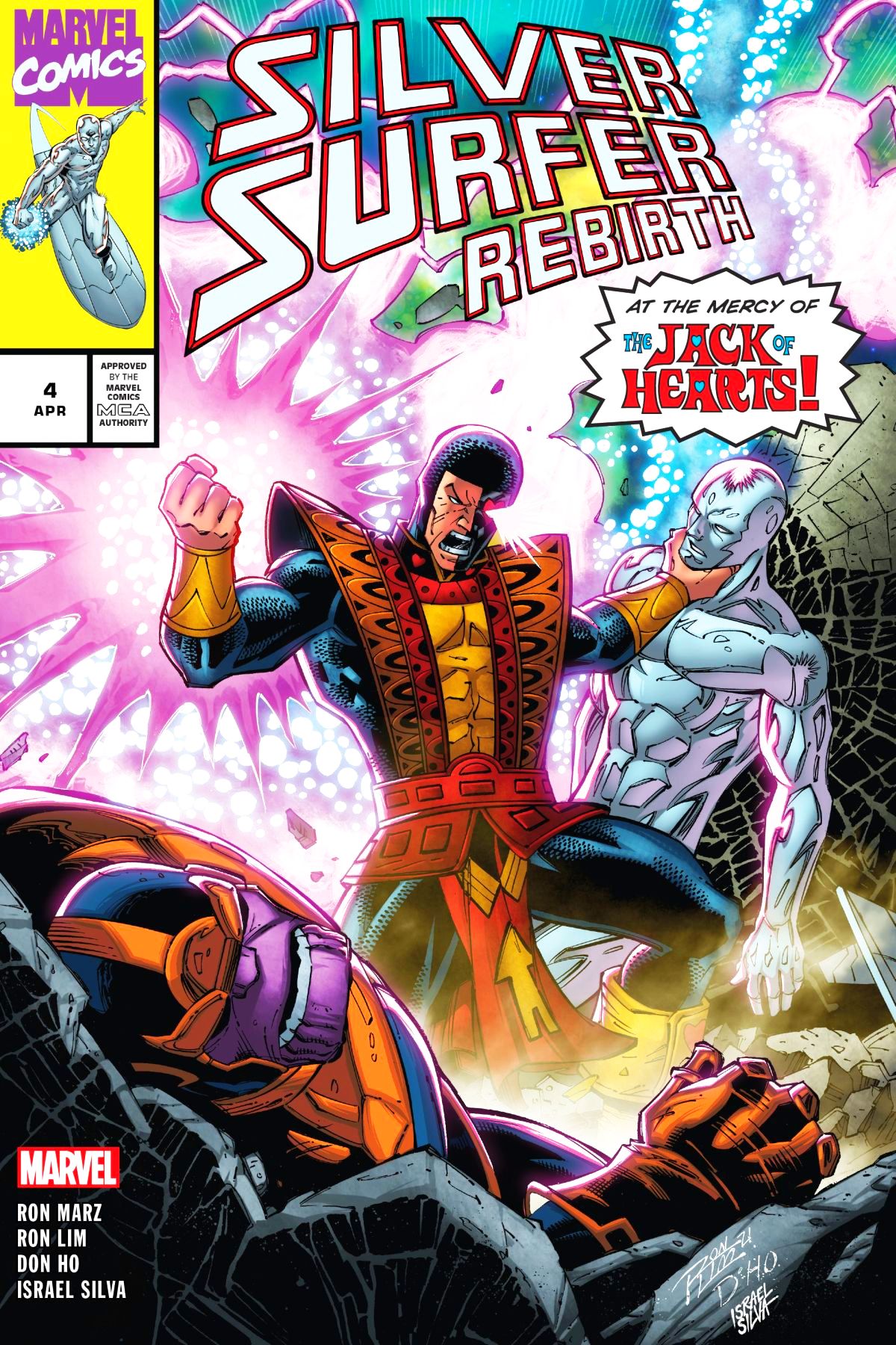JACK'S BACK! • Surfer and Thanos are getting closer to retrieving the Reality Gem... • ...but not if Jack of Hearts has anything to say about it! • But who...or what...is possessing Jack to attack his silver friend?! PARENTAL ADVISORY |