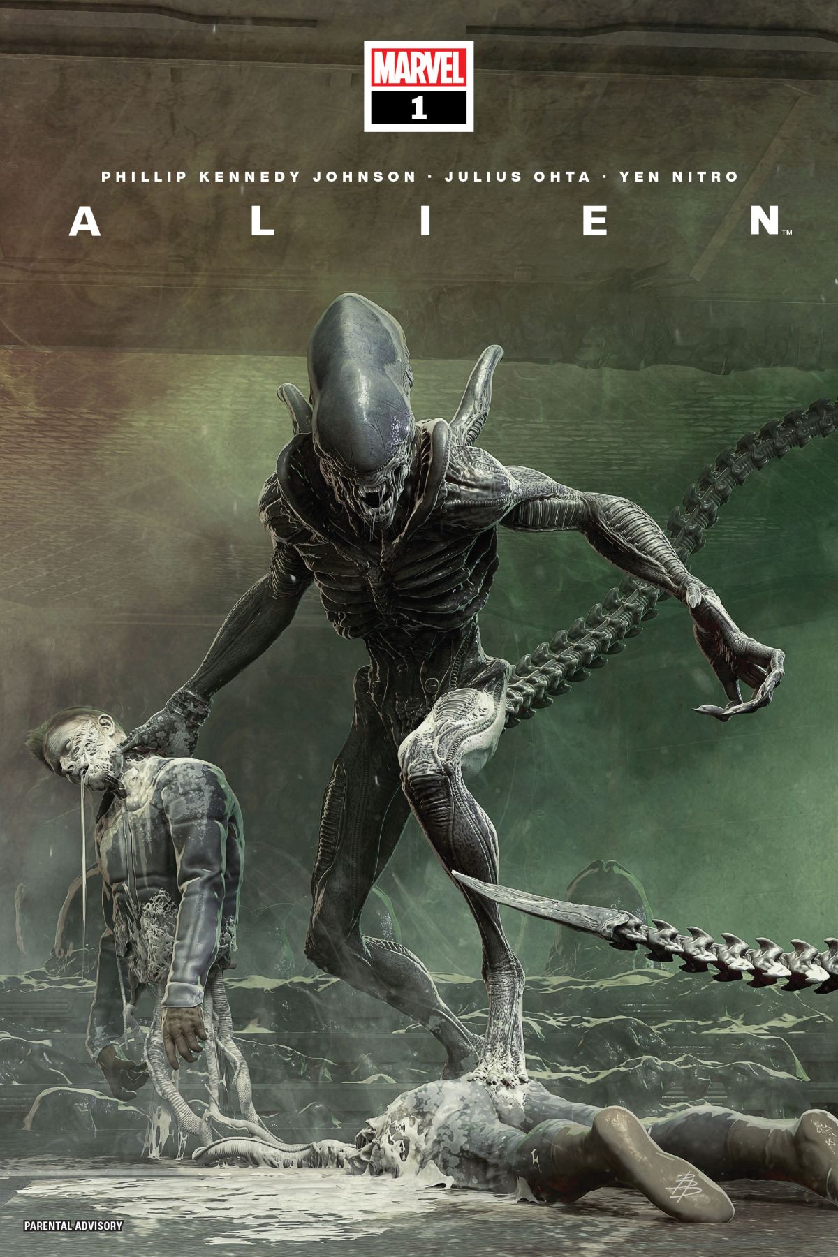 PHILLIP KENNEDY JOHNSON AND JULIUS OHTA LAUNCH A NEW ALIEN EPIC! MAN, MACHINE, AND THE MOST TERRIFYING CREATURE IN THE UNIVERSE IT'S AN EXPRESS ELEVATOR TO HELL, AND YOU'RE GONNA WANT TO BE ON IT! A small colony of synths have settled in secret on a backwater moon. When a company of United System soldiers come to them for help retrieving biotechnology on a hostile planet that could be the key to saving humanity, the synths must decide whether the prospect of peace between man and machine is worth the risk of betrayal. PARENTAL ADVISORY |