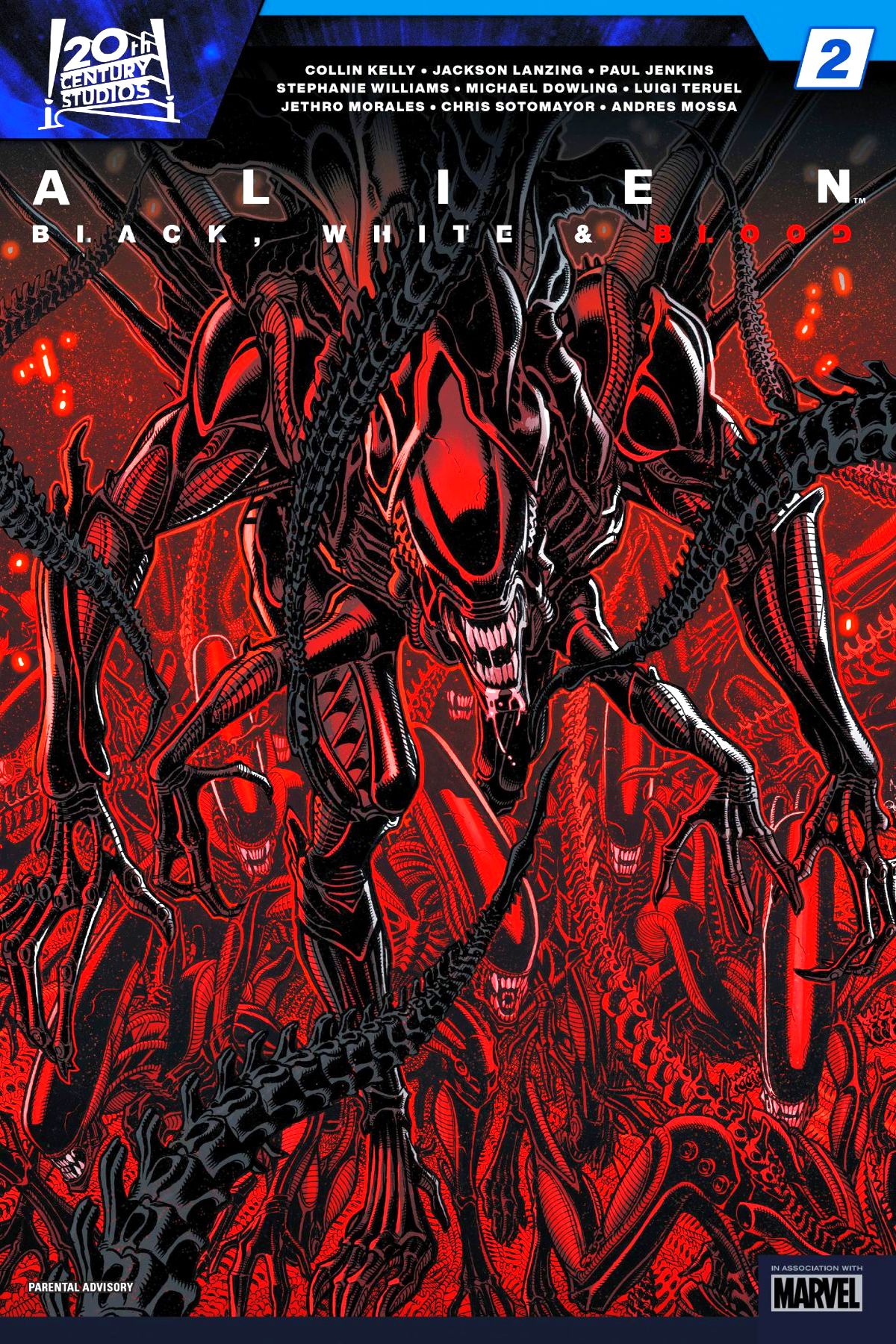 THE ALIEN LEGACY CONTINUES IN A BOLD AND BLOODY ANTHOLOGY SERIES! Collin Kelly, Jackson Lanzing and Michael Dowling's generations-spanning epic continues! Then legendary writer Paul Jenkins explores the chemistry of fear in a story that will leave you with a whole new and terrifying understanding of the Xenomorph species. And Stephanie Williams thrills with a story of a marine's first - and possibly last - day on the job. Marvel's landmark BLACK, WHITE & BLOOD series takes horror to another level! Rated T+ |