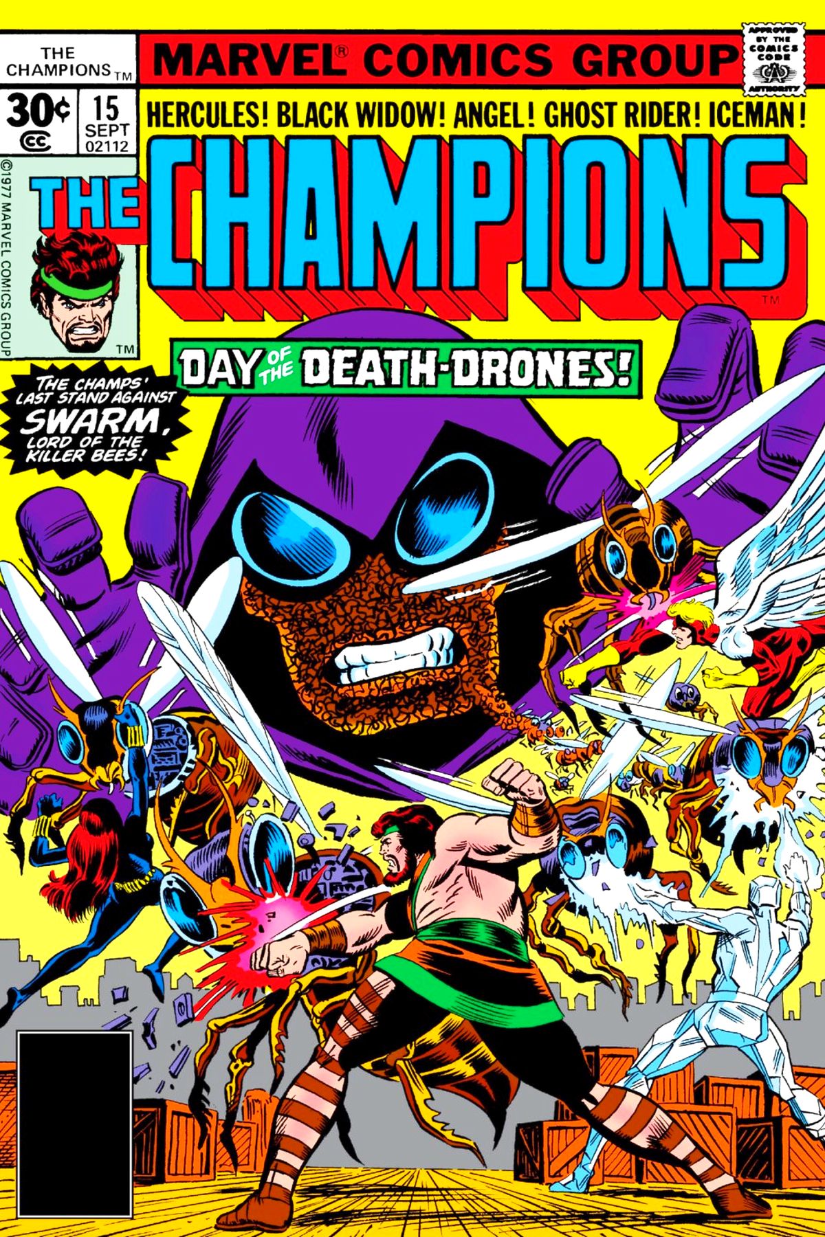 Swarm continues his/her/their assault on the Champions headquarters, hoping to recover the Queen Bee that has been trapped by the Interpol agent. The Champions stand fast, and manage to win the day by deducing the mechanism of Swarm's control.