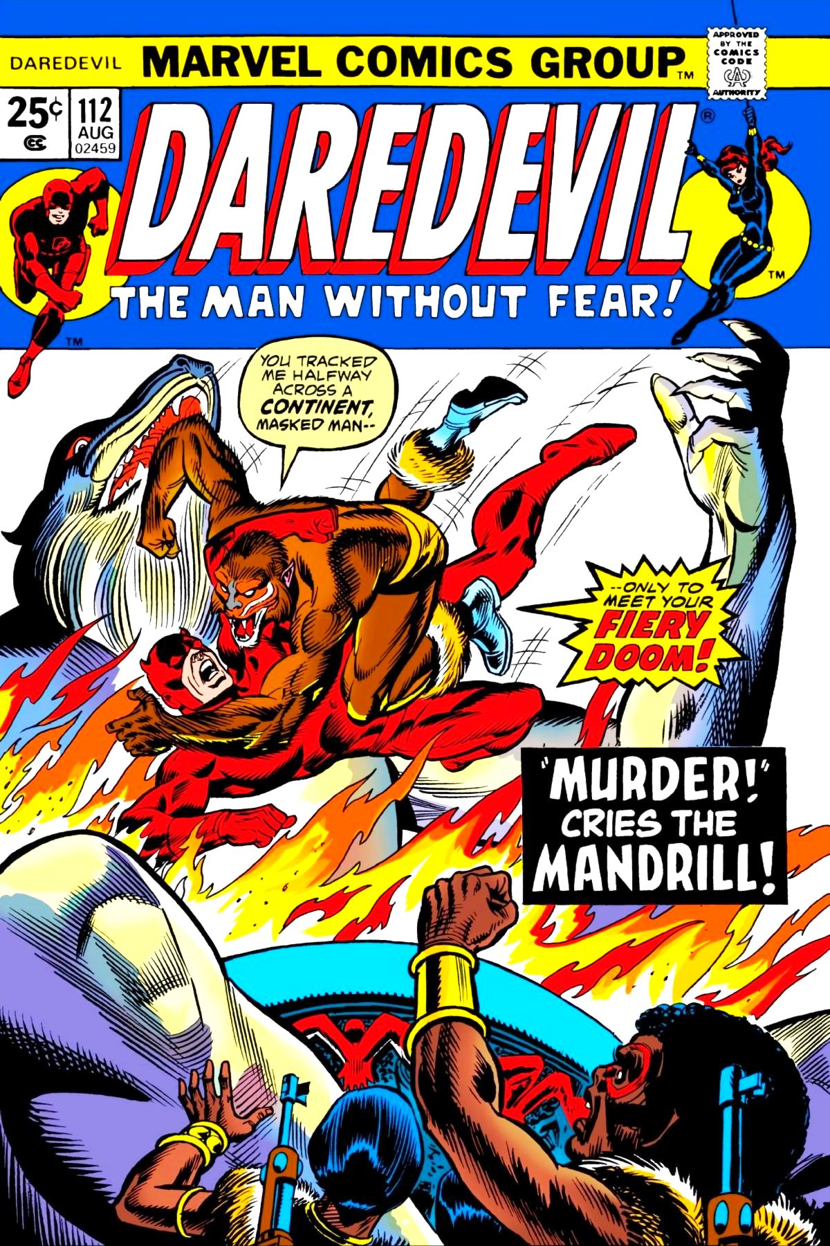 With Daredevil and Shanna captured and Black Widow enthralled, it doesn't seem like the United States can mount a defense against the Mandrill's takeover. He's even tied up the other heroes with the threat of an atomic bomb. DD manages to break Mandrill's hold over the Black Widow, and the three mount a final defense.