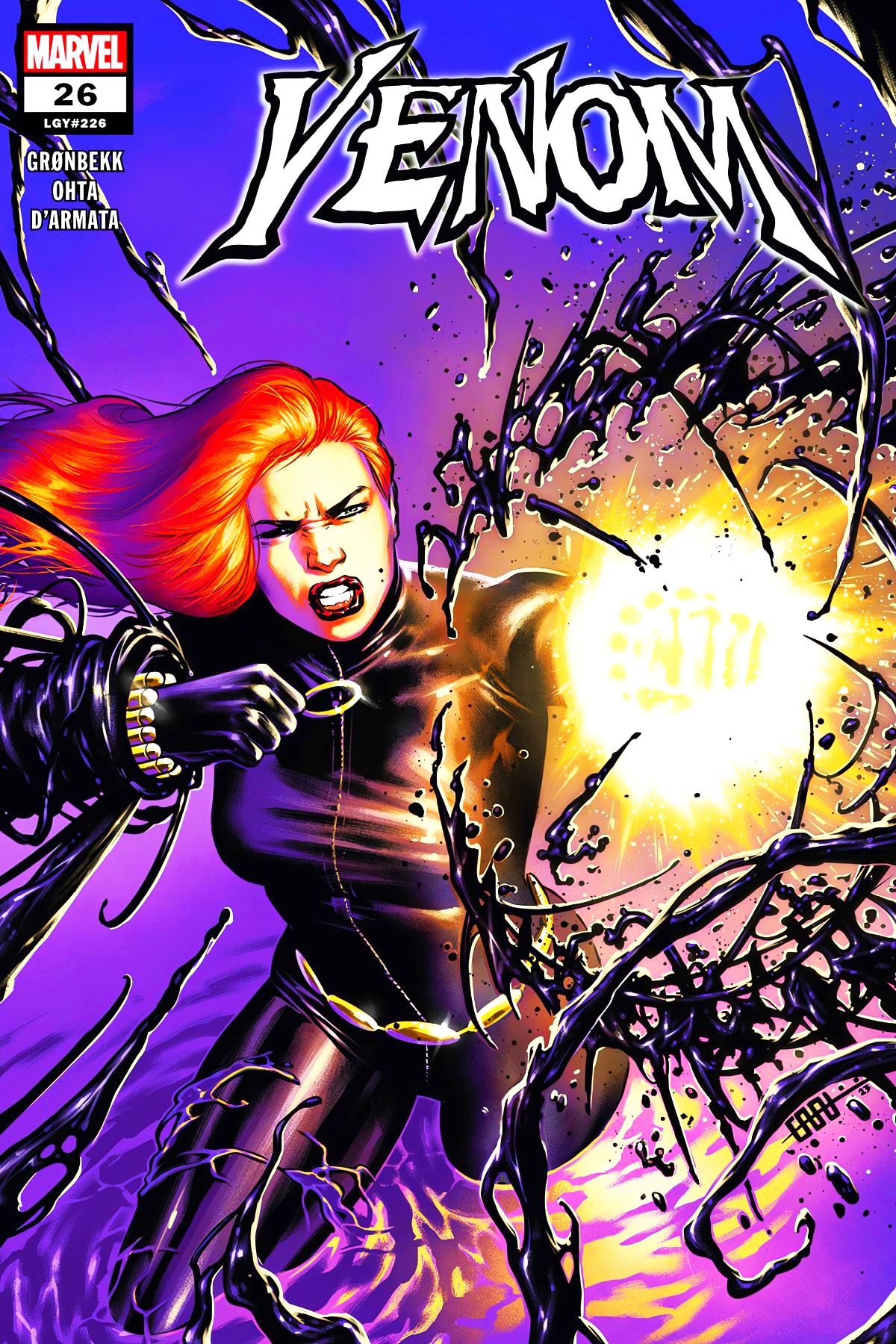 THE STING OF THE WIDOW! After the shocking events of VENOM #23, NATASHA ROMANOFF, THE BLACK WIDOW, crosses paths with the symbiotes in a way that will leave them both changed FOREVER! Rated T+ |