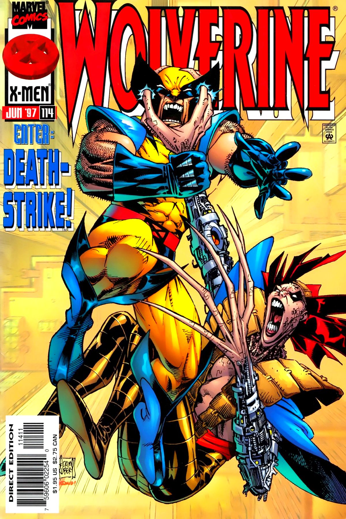 Wolvie's back and better than ever! He's got a brand spanking new artist, he's wearing his costume again, heck, he even has a nose again! You can bet he's ready to throw down with anybody, unfortunately, there's someone who's just as anxious to scrap, the cyborg known as Donald Pierce! |