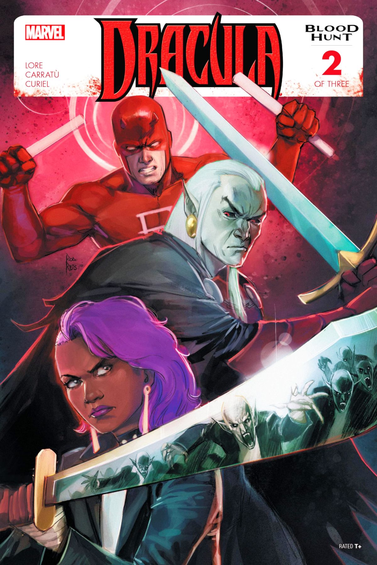 In the deepest, darkest, unholiest night ever known to man or beast, DRACULA, Lord of Vampires, has come to BLOODLINE, daughter of Blade, demanding a sacrifice: a devil's bargain of the soul. A soul in peril? Seek a priest. A deal to escape? A lawyer. And a devil must be met face-to-face. Luckily for Bloodline, there's one man who fulfills all three criteria: none other than DAREDEVIL. But does he - or anyone - stand a chance against a city full of bloodthirsty vampires...and the unending night in which they feed?! Rated T+ |