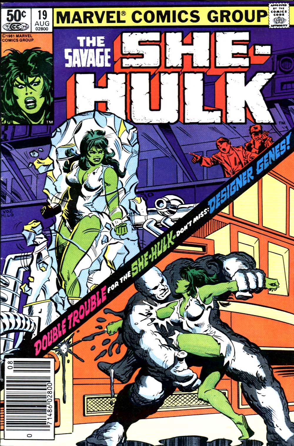 "Designer Genes!" - Jennifer is startled to learn she's changing into the She-Hulk even when she doesn't want to. Plus, the Emerald Giantess faces off with a man brute whose skin can take her mightiest blows and then some.
