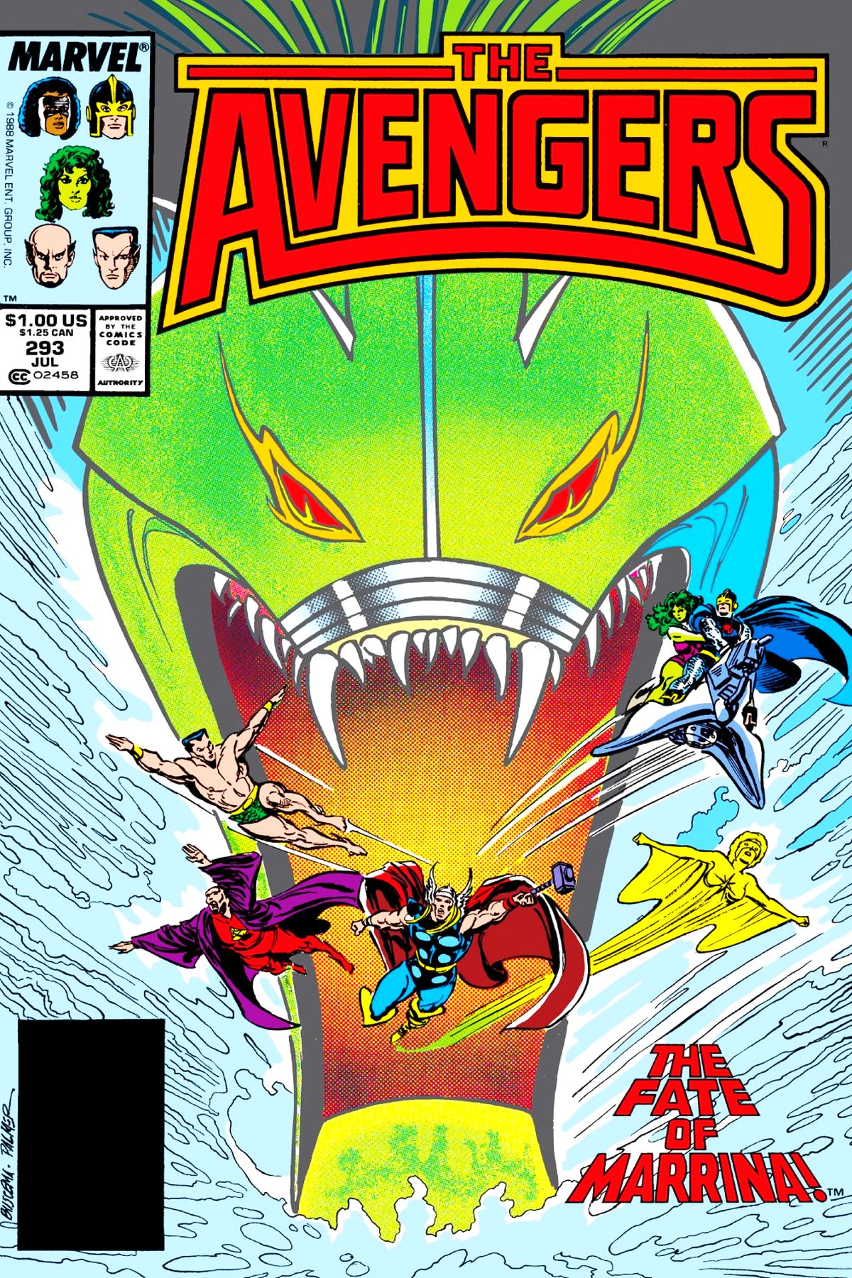 The Sub-Mariner's wife Marinna has become a raging Leviathan! And the only way the Avengers can stop her is by killing her! Can the awesome Assemblers bring themselves to kill their one-time friend and ally? And even if they can, do they have the power to do it? |