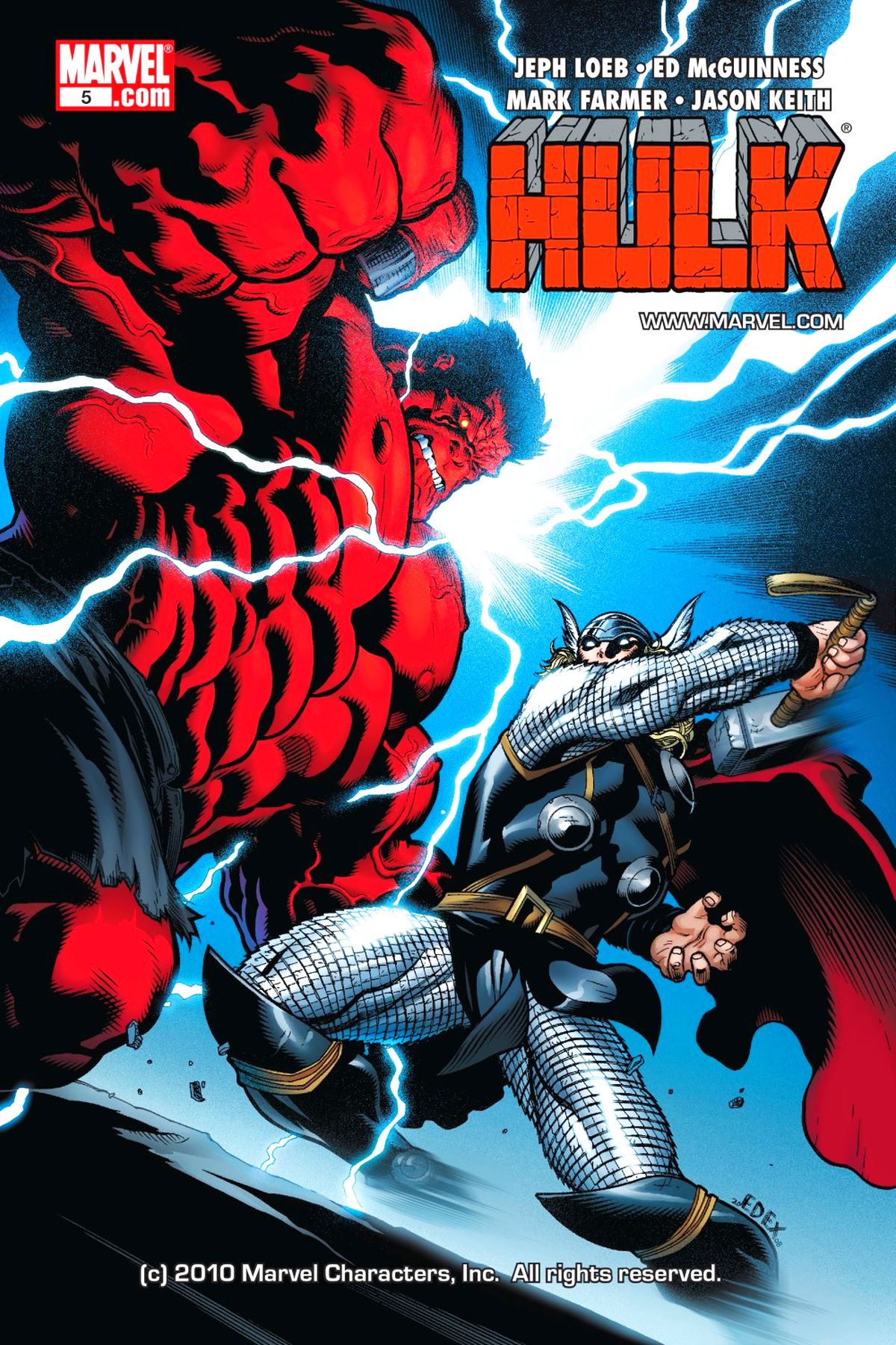 Thor faces off against the Red Hulk, planning to put him down as a threat to the world. The Red Hulk, however, is powerful enough to stand up against Thor, and smart enough to exploit weaknesses in Mjolnir's enchantment to use Thor's weapon to do it. Meanwhile, Iron Man collects a team to help the Green Hulk take down the Red Hulk. |