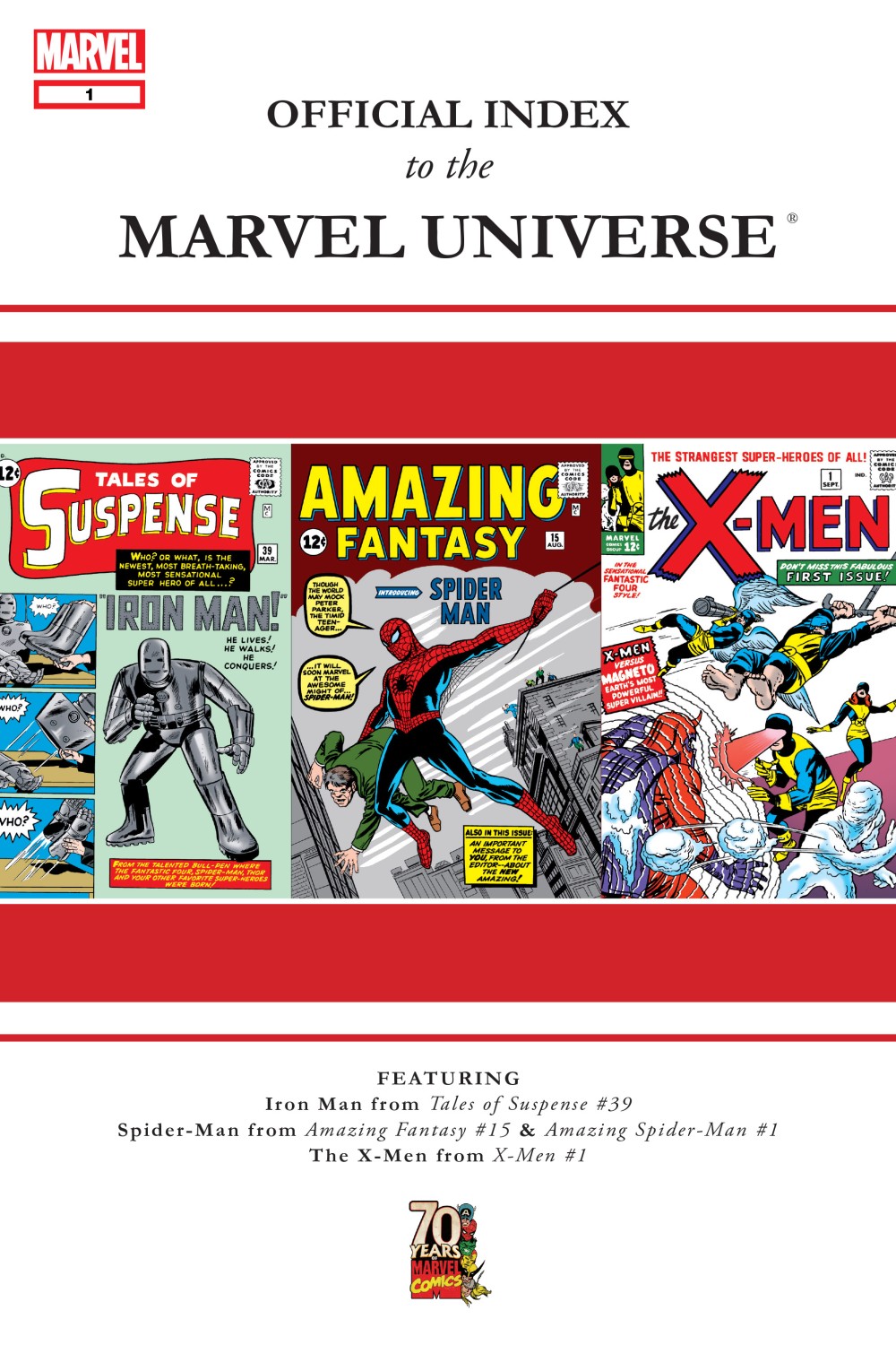 This issue catalogs Iron Man stories from Tales of Suspense #39-73; Spider-Man stories from Amazing Fantasy #15, Amazing Spider-Man #1-52, and Amazing Spider-Man Annual #1-4; and X-Men stories from Uncanny X-Men #1-50. |