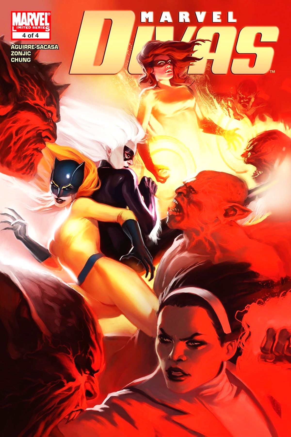 Written by ROBERTO AGUIRRE-SACASA Art by TONCI ZONJIC Cover by JELENA KEVIC DJURDJEVIC All your questions will be answered here, True Believers! When the real intentions behind Daimon Hellstrom's indecent proposal come to light, does it mean that once again, Patsy Walker is going to Hell? Also, now that Monica's helped Doctor Voodoo obtain the dread monkey's paw, does that means HE now owes HER? After Felicia's fight with the Puma last issue, is there any way their relationship can survive? And when a blast from the past re-enters Angelica's life, will it be at the moment of her greatest triumph or most crushing defeat? All bets are off in the heart-stopping conclusion of this high-buzz mini-series! 32 PGS./Parental Advisory ?$3.99 |