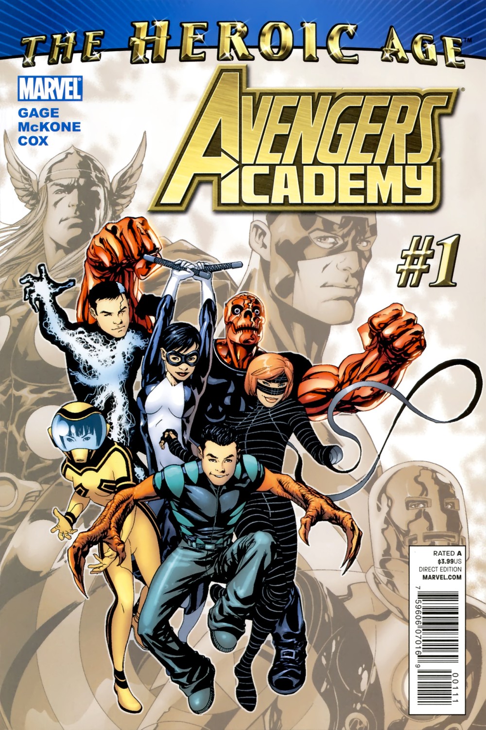 Written by CHRISTOS GAGE Pencils & Cover by MIKE MCKONE Variant Cover by MIKE MCKONE Variant Cover by MARKO DJURDJEVIC THE HEROIC AGE IS HERE! A BRAND NEW ONGOING AVENGERS TITLE BEGINS HERE! Determined to keep the tradition alive, founding Avenger Hank Pym leads a core team of veteran heroes in creating a place where the next generation of Earth's Mightiest can be trained by the greatest of those who preceded them. An institution where everyone who has ever been an Avenger can share their skill, knowledge and experience. The future is in their hands...and in the hands of the six young superhumans chosen to make up the inaugural class. But who are they? And what dark secret will turn their world--and potentially the entire Marvel Universe--upside down by the end of the issue? If you think this is just another teen hero book...the last page shocker will prove you wrong! Writer Christos Gage (AVENGERS: THE INITIATIVE) and superstar artist Mike McKone (AMAZING SPIDER-MAN) unite to bring you a bold new era of greatness! 40 PGS./Rated A ?$3.99 |