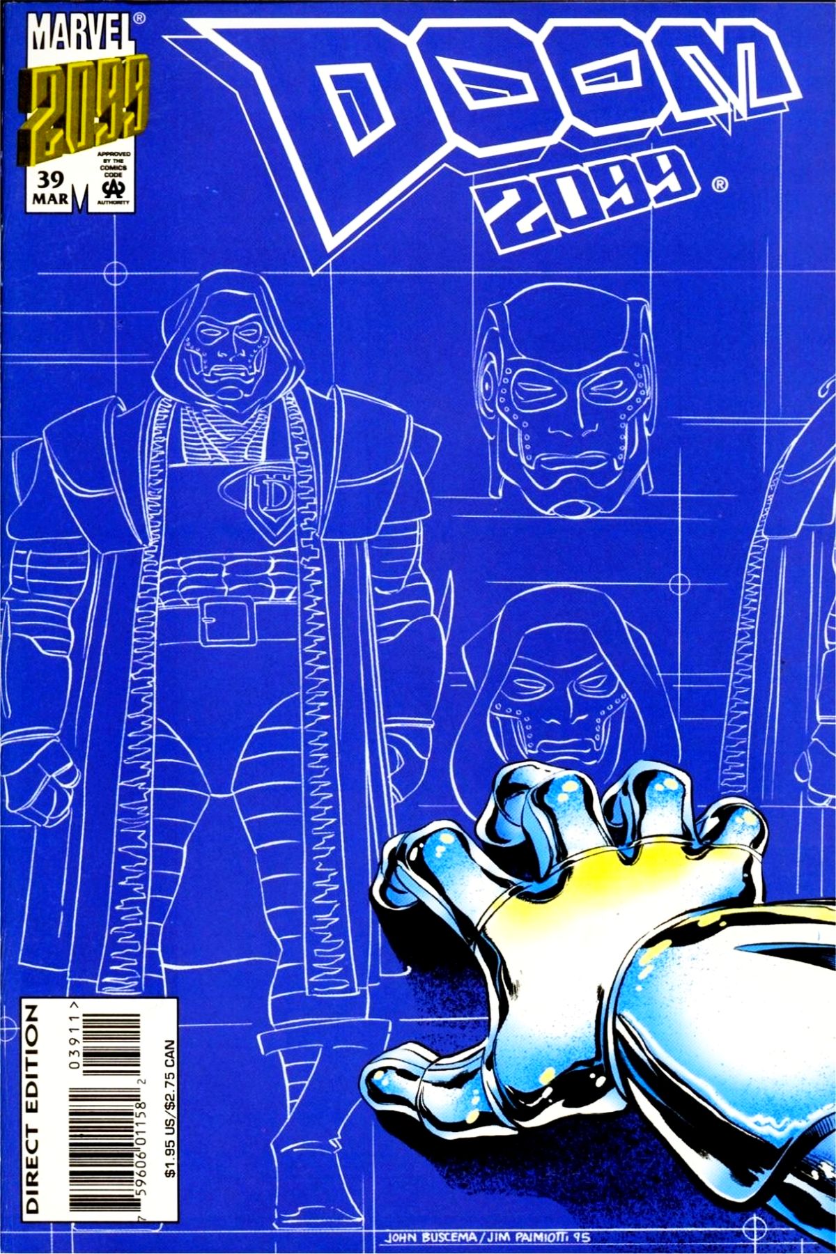 Written by Warren Ellis. Art by John Buscema and Scott Koblish. Cover by John Buscema and Jim Palmiotti. May the Circle be Unbroken; Doctor Doom contemplates nanotech as a cure for starvation and poverty, how conquering the world would bring utopia, and how the world is indebted to him; Spider-Man 2099 guest-stars. 36 pages, full color. $1.95. Cover price $1.95. |