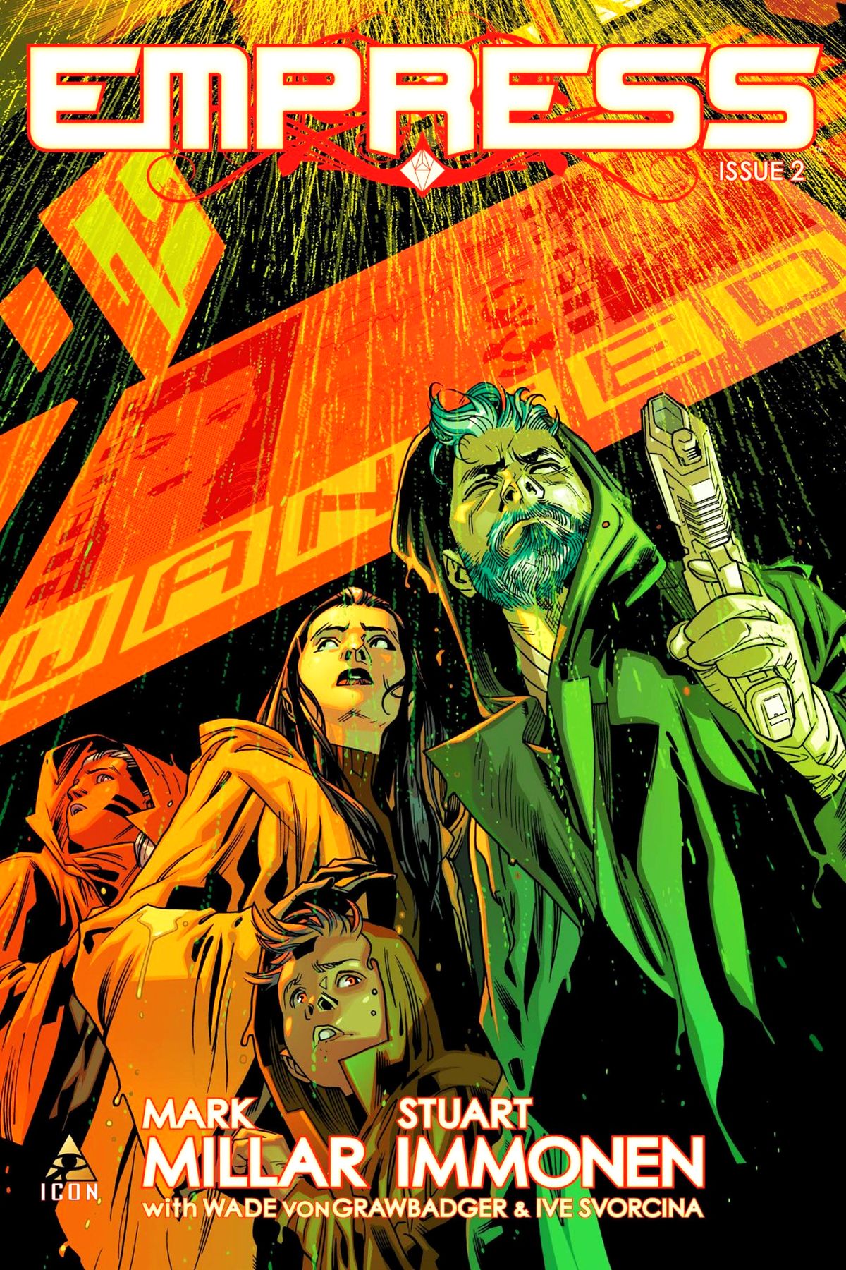 Queen Emporia is on the run from her husband, along with her kids and bodyguard. Now all they have to do is get across the galaxy while the world's most ruthless dictator has all his forces in hot pursuit. Easy, right? A plea for help on an alien stopover world plus a broken transporter could end their adventure before it's begun! The stakes get even higher in the latest from superstar creators Millar and Immonen! RATED T+ |