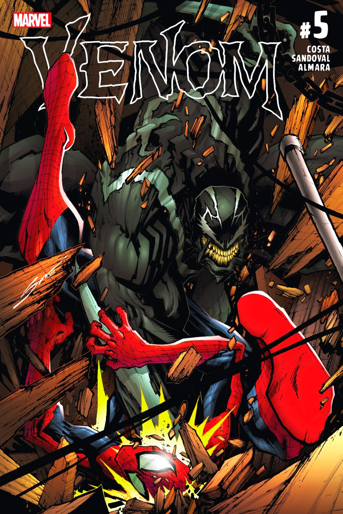 • IN THIS CORNER: The scariest symbiotic sociopath this side of the Savage Land! You know him, you love him... The one, the only VENOM! •  IN THE OTHER CORNER: The wall-crawling, web-slinging wonder called THE AMAZING SPIDER-MAN! •  Step right up and place your bets - the bout of the century is about to begin! Rated T+