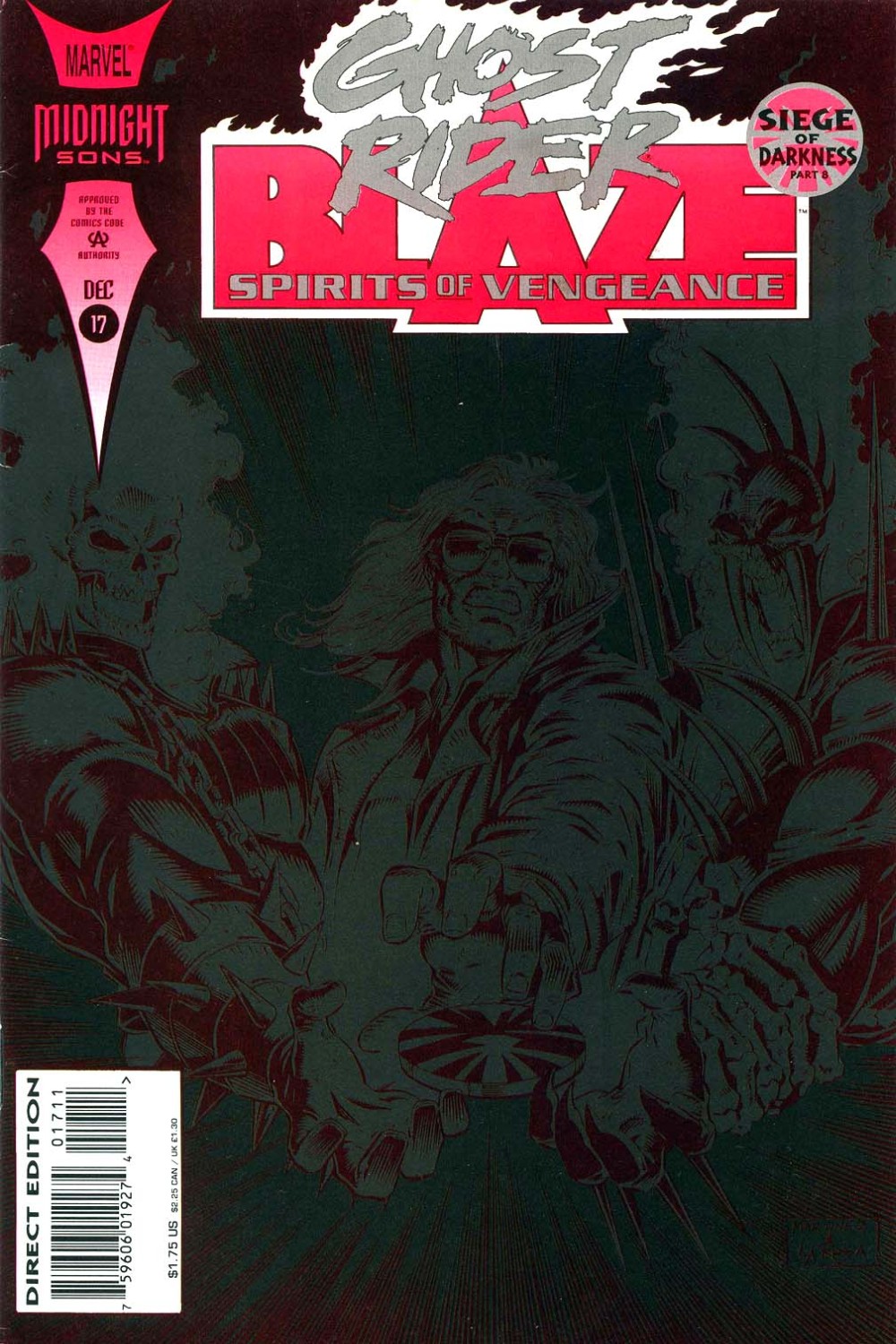 Siege of Darkness: Part 8 of 17 The new Midnight Sons trade dress and a special neon ink cover with matte varnish grace this issue! Lilith and Zarathos make a pact to destroy the Midnight Sons, but can Blaze, Ghost Rider and Vengeance stop them? Uncover more secrets about Siege of Darkness i nthe Ghost Rider and the Midnight Sons Magazine!