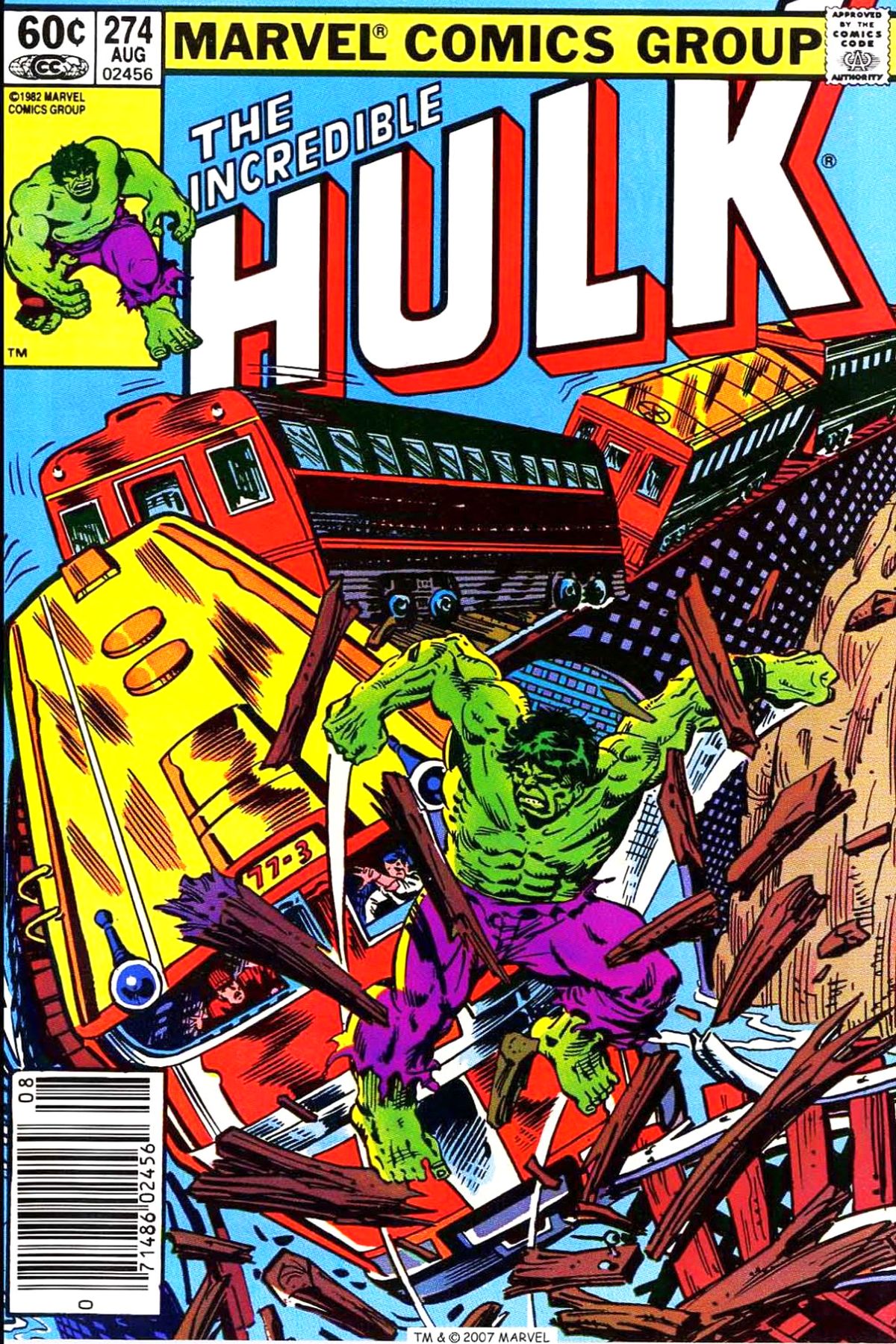 After his encounter with the Klklk left the peope of St. Clair with their crops ruined, the Hulk decides to help them by gathering enough lumber to give them income to feed themselves through the winter. The Hulk is hailed as a hero, however Banner points out that he wasn't always such, recalling the days when he turned into a savage whenever he changed into the Hulk. Bruce also refuses their offer to stay among them as he must return to the United States and let his friend Betty and Rick know that he is okay. As the Hulk leaps across the Canadian landscape, he spots a damanged rail bridge and that an oncoming train is on is about to cross it. Bruce tries to support the bridge but misjudges his own strength and ends up wrecking the bridge instead. When the train goes off the rails, the Hulk leaps up and pulls it to safety. However, the conductor and the passengers are unimpressed with their having their lives put at risk. This angers Bruce enough that his Hulk persona almost comes to the fore, but he controls himself and leaps away before he can be upset further. He soon lands at the Canada/US Border where he reverts back into Bruce Banner. When he tries to cross the border he is stopped by customs agent. When he tells them he is the Hulk, they laugh at it until Bruce transforms in front of them. As they open fire, the Hulk simply walks past. One of the customs officers rushes back to his booth where he calls in the National Guard. At that moment, in New Mexico, Breet and Betty Ross arrive at the abandoned Gamma Base where they hope to cure Rick Jones of his self-inflicted radiation poisoning. However, Betty isn't sure what they can do to cure Rick without Bruce Banner with them. As they head to the main lab, they are unaware that they are being observed by a winged individual flying above the base. Back up north, the Hulk continues on his way back to New Mexico when he is suddenly confronted by the National Guard. They order the Hulk to surrender, and although Banner makes no overt moves against them they panic and open fire. Bruce simply walks through the onslaught leaving the soldiers confused. When one of them asks the Hulk what he thinks he is doing, Bruce turns around and tells them that all he wants to do is get back home and leaps away. As the Hulk makes his way across the United States, he passes the site where not too long ago, the Hulk battled the U-Foes. The Hulk's landing awakens Ironclad, who has been trapped in the ground since the U-Foes defeat. Seeing the Hulk leaps away, Ironclad vows to get revenge. |