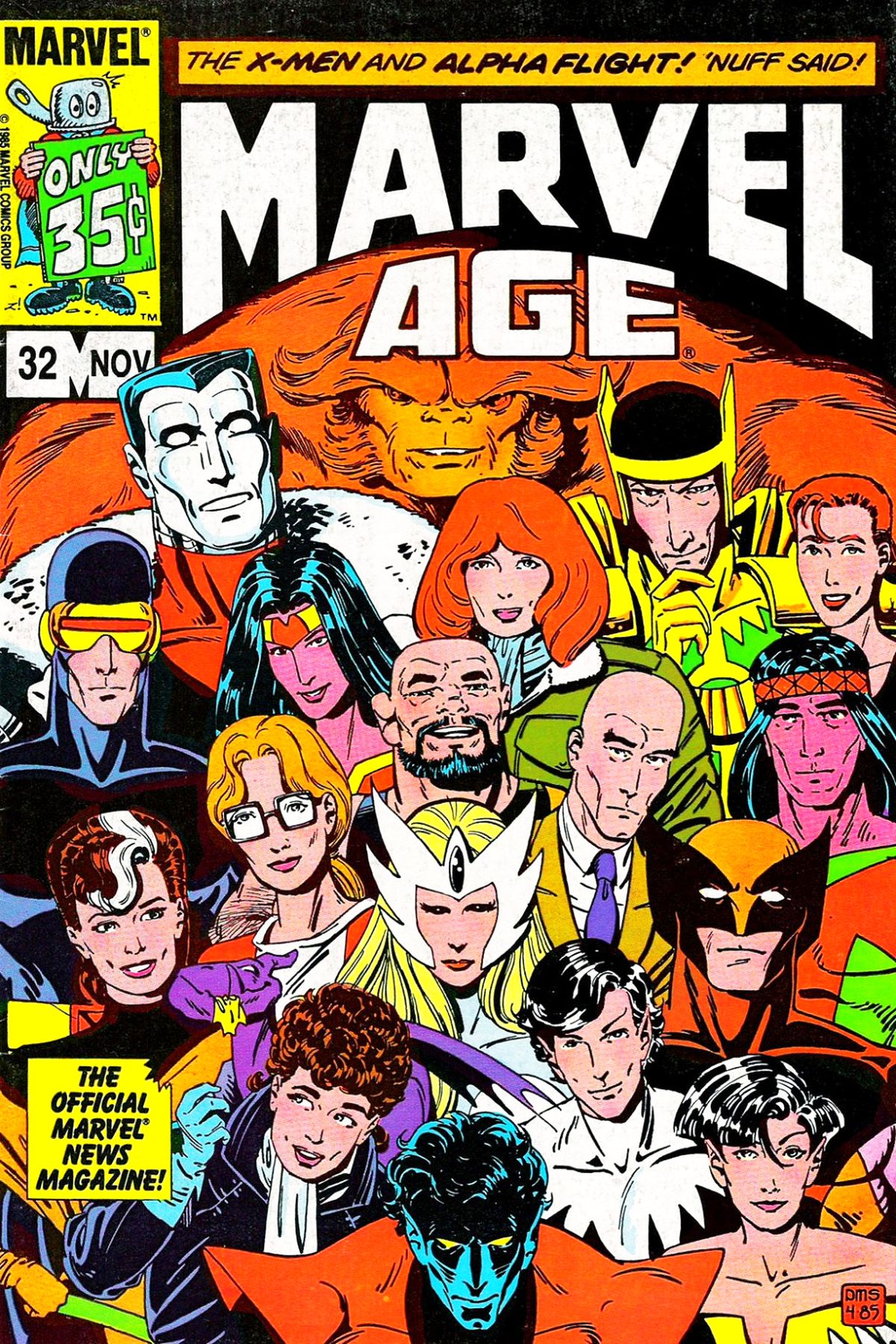 David Michelinie discusses The Bozz Chronicles; 2-page Fred Hembeck strip; Chris Claremont and Paul Smith discuss X-Men and Alpha Flight limited series; Chris Claremont discusses Uncanny X-Men #200, with character sketches by Art Adams; 'It's Genetic' strip by Jim Salicrup and Kyle Baker; Berni Wrightson, Jim Shooter and Chris Claremont discuss Heroes For Hope Starring the X-Men; Eternals character designs by Sal Buscema; Paul Smith cover. Cover price $0.35. |