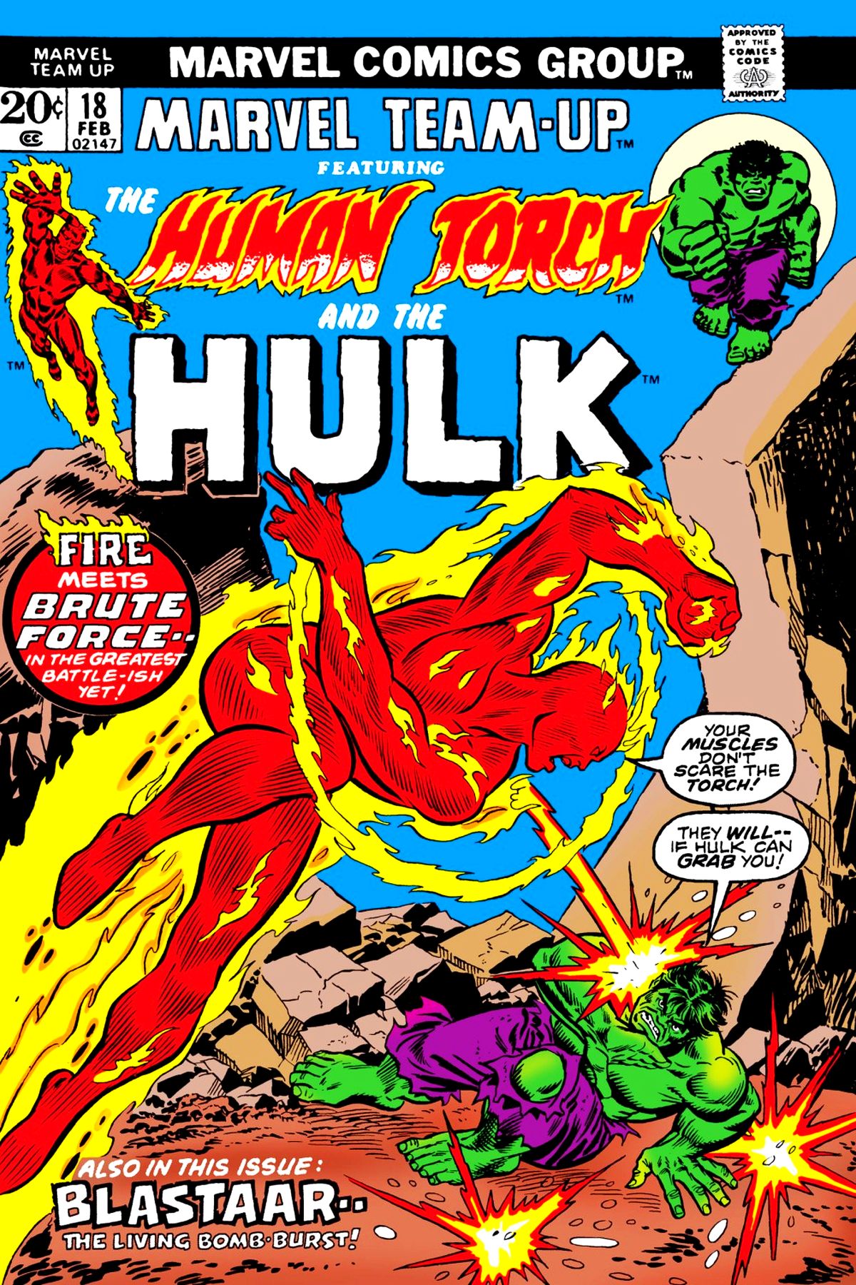 The Human Torch and Wyatt Wingfoot stumble across Blastaar, who is under the control of Paxton Pentacost. The pair team up with the Hulk, as they will clearly need help to defeat this threat. |