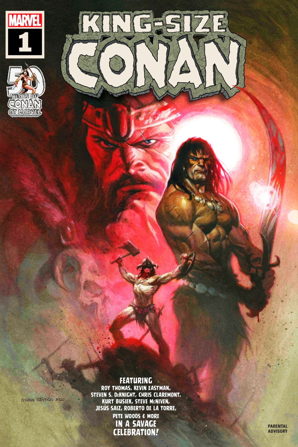 BY CROM, YOU'VE NEVER SEEN A CELEBRATION LIKE THIS - MARKING 50 YEARS OF CONAN THE BARBARIAN IN COMICS! Revelations, surprises and savage action prevail in the all-new KING-SIZE CONAN! In 1970, Roy Thomas brought CONAN THE BARBARIAN, a creation of author Robert E. Howard, to Marvel Comics. With art by the incomparable Barry Windsor-Smith, CONAN THE BARBARIAN #1 introduced the Hyborian Age to a whole new audience, paving the way for decades of comics and Conan's conquest of pop culture.   Now get ready to celebrate 50 years of CONAN with an oversize special spanning the breadth of Conan's life and times by the most dazzling array of creative talent ever assembled in one book to tread the jeweled thrones of the Earth!   Experience Roy Thomas and Steve McNiven's all-new prelude to that original story from 1970! Thrill to a tale of revenge by Kevin Eastman (co-creator, Teenage Mutant Ninja Turtles), writing and drawing his FIRST Marvel story!   Chris Claremont and Roberto de la Torre team up to unveil a turning point in Conan's career as a mercenary! Kurt Busiek and Pete Woods recount an early brush with sorcerous forces that will shape Conan's destiny! Conan and Bêlit sail together again for the first time since the 2019 relaunch, with Jes s Saiz illustrating the Marvel Comics maiden voyage of Steven S. DeKnight (Netflix's DAREDEVIL writer/director/showrunner)! The perfect introduction for new fans, and an essential adventure for die-hards, this is the can't-miss CONAN comic of the decade! Parental Advisory
