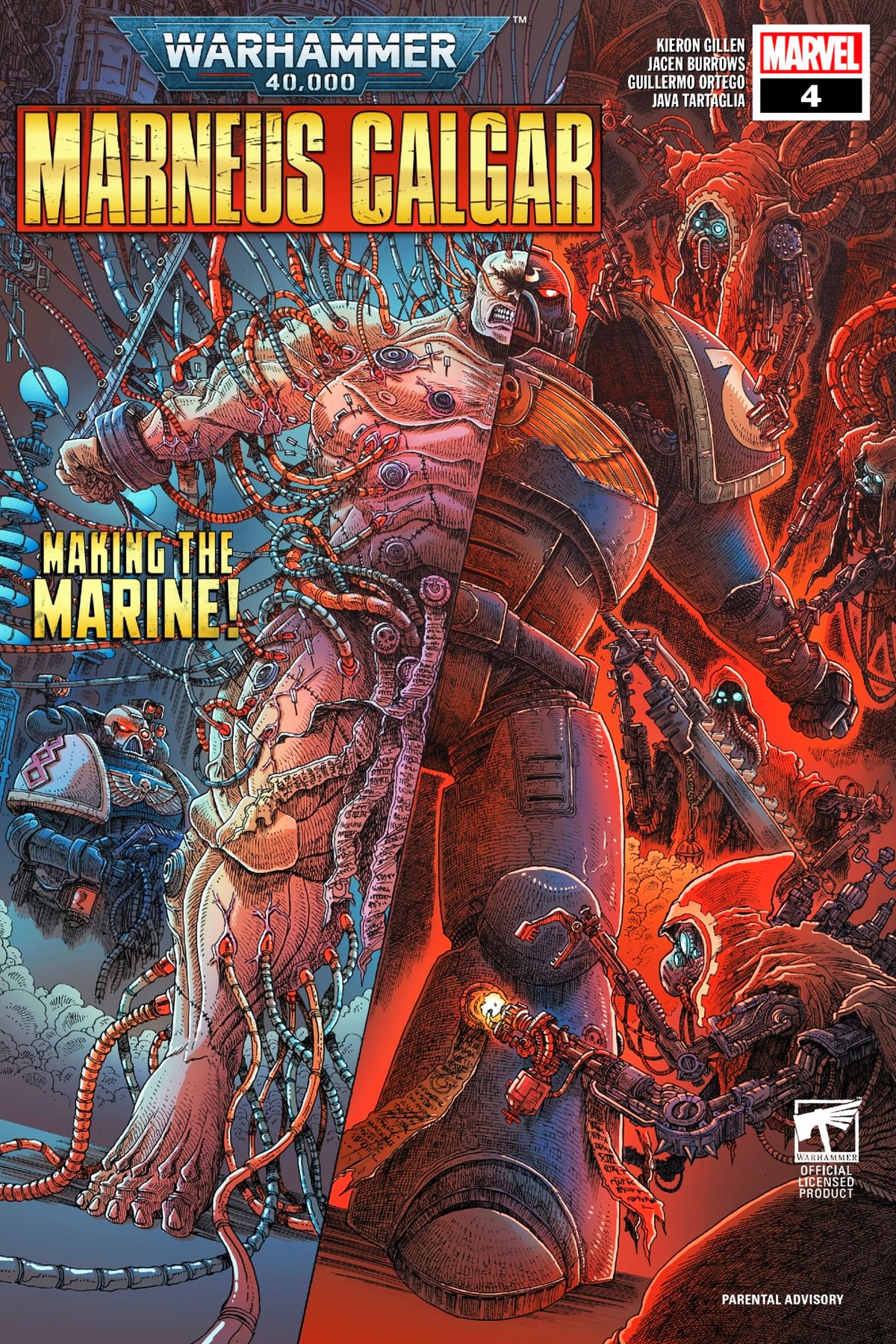 THE MAKING OF A SPACE MARINE! • Young MARNEUS CALGAR has passed his Space Marine Aspirant testing...but that means the real trial is only just beginning! • As Marneus undergoes the rigorous training, excruciating organ implantation and strenuous physical augmentation, he will have to prove that, against all odds, he has what it takes! • And in the 41st Millennium, the assault on CALGAR ESTATES reaches a deadly climax! Parental Advisory |