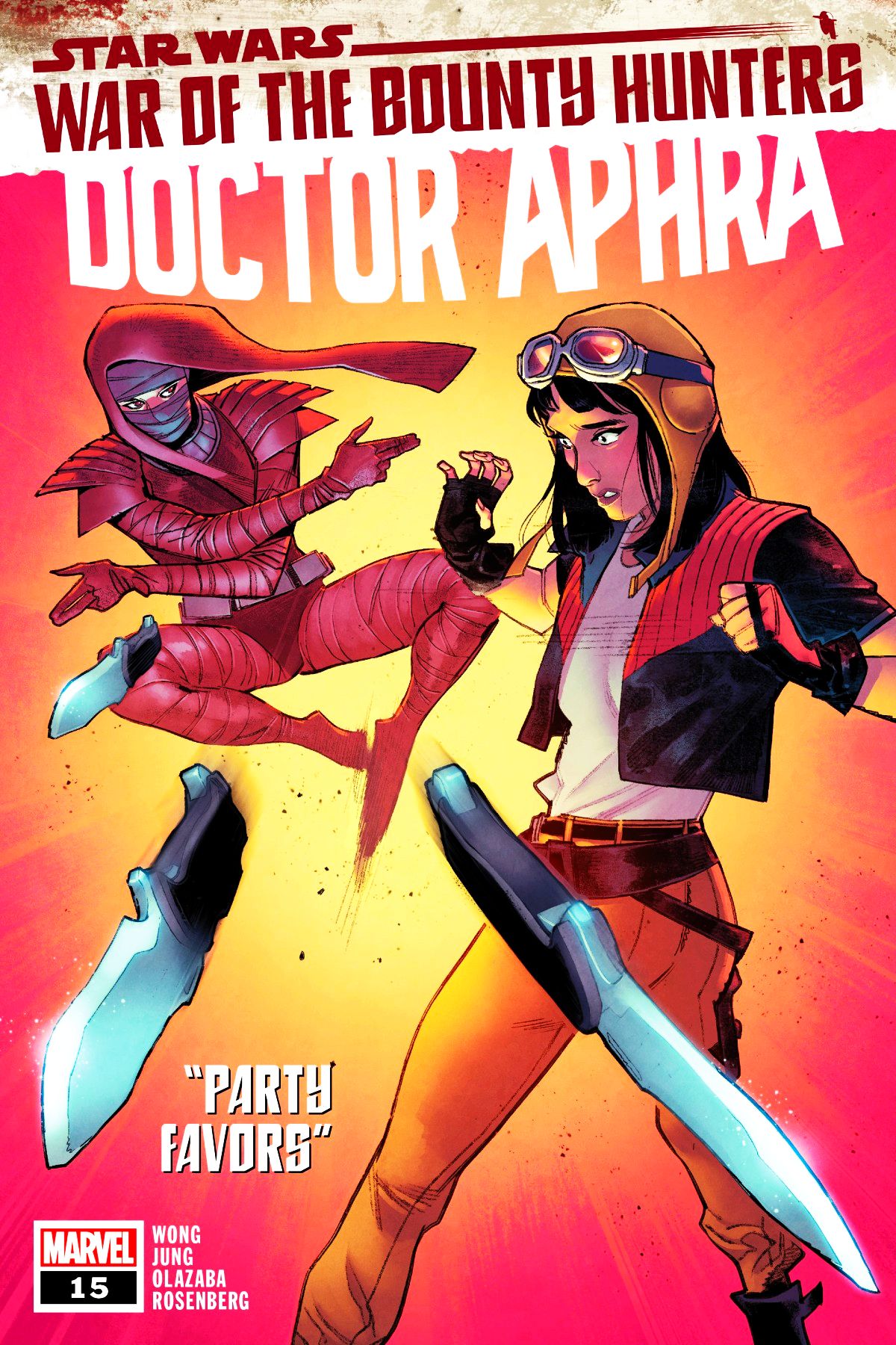 "PARTY FAVORS" • CRIMSON DAWN is back, and DOCTOR APHRA is trapped aboard their ship! • What treasures lie aboard the VERMILLION? • And what price will Aphra have to pay to obtain them? RATED T |