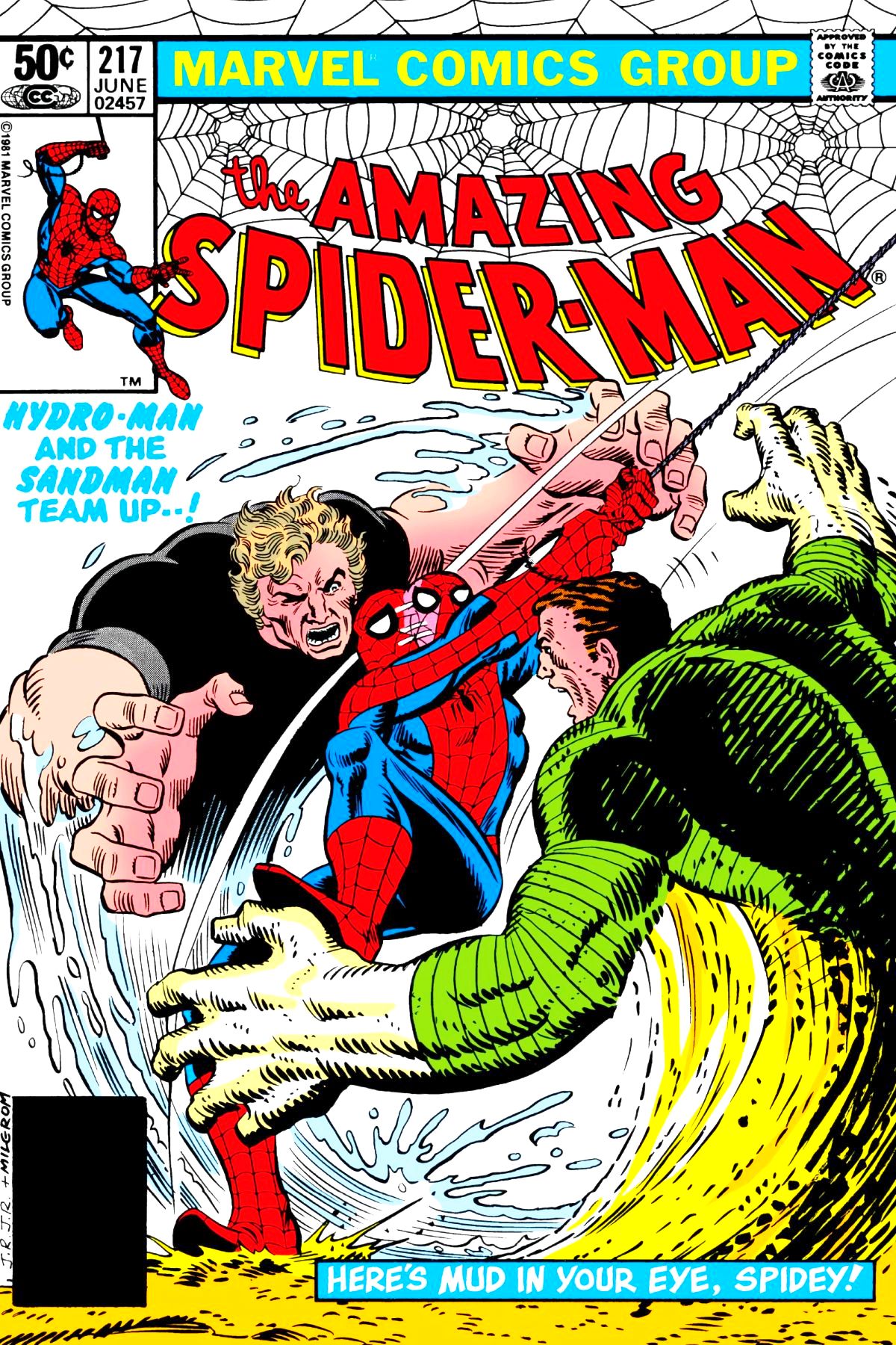 Peter has saved Barney Wicker, but Hydro-Man appears behind him. He manages to escape with the aid of some of New York's finest. Soon, Sandman and Hydro-Man meet and start to bicker over the same woman, who encourages them to team up. Peter gets wind of their fight while at the Bugle, and decides to find them before they find him, even though he's not completely healed. |