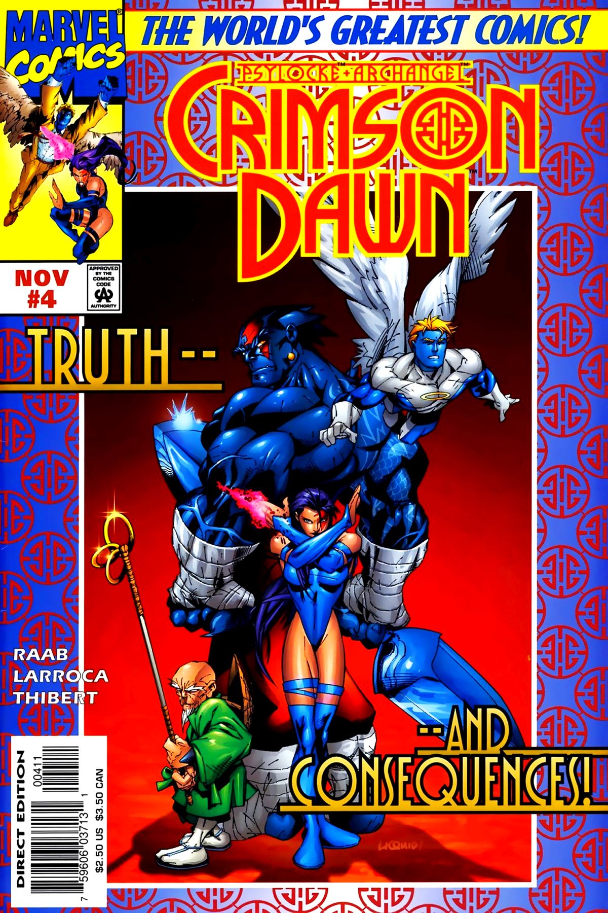 The conclusion to the X-Men's lethal lovers' limited series! Truth...and consequences! Will their love survive, or will the Psylocke that Archangel knows be lost forever? Written by Ben Raab. Art and cover by Salvador Larroca and Art Thibert. Cover price $2.50.