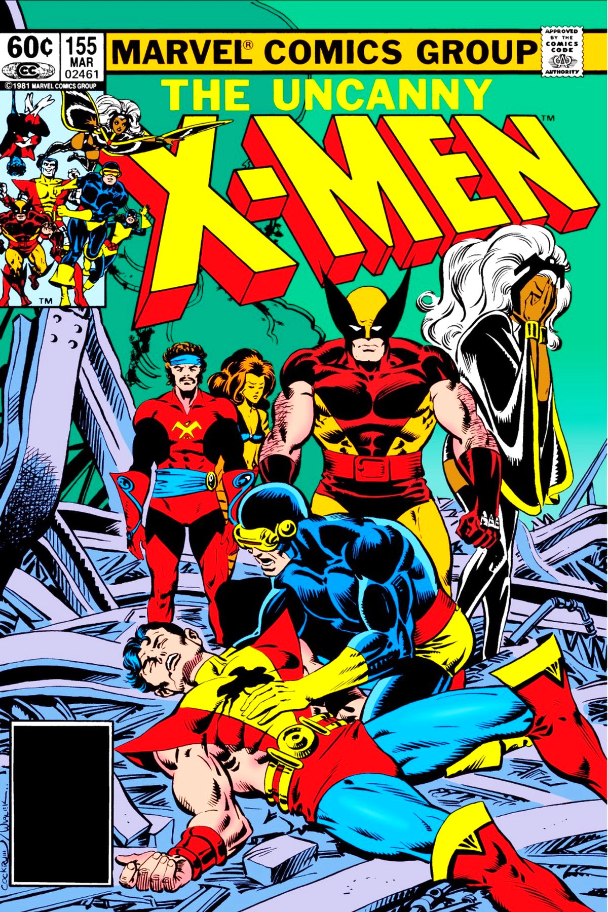 Cyclops has just recently learned Corsair is his father. He's also learned that Storm has known for quite some time.[1] Scott is not happy to have had the truth hidden from him, and he yells at Corsair. They soon have other problems, however, as the Blackbird is teleported en masse into a Shi'ar warship! Shortly thereafter, the other X-Men are also taken from the Caribbean to appear in that same hangar bay! Xavier demands to speak with Lilandra, but Chancellor Araki explains that it is impossible and takes the X-Men to be briefed. Lilandra was captured and taken to Earth.[2] The Shi'ar are planning to send a detachment down to retrieve her, but Xavier points out that it will lead to Lilandra's death and the deaths of many of the earth's inhabitants. As Shivarn'n Halanau (consort), Professor X forbids that plan, and Chancellor Araki gives him one day to retrieve Lilandra or they'll invade anyway. He also demands two X-Men stay on board as hostages, and after a brief consultation, the X-Men leave Kitty and Kurt behind, but not before Professor X forms a mind-link with Kitty to give her all his knowledge about the Shi'ar. The X-Men are then teleported back down to earth. The X-Men go to Avengers Mansion to get some help, but they only find Tigra at home.[3] Tigra agrees to accompany them. While there, Storm and Corsair take off on their own. On the ship, Kitty is getting her first view of Earth from outer space. Then Kitty shows off the clothes-making machine she discovered.[4] She reveals to Nightcrawler that she's playing with the machine to mask her hacking into the ship's computers to get blueprints and other data. Corsair and Storm are walking in Manhattan, talking. Suddenly, Corsair is targeted by a mysterious foe. The gunman, a Brood warrior,[5] is taking orders from a shadowed figure with wings, who commands the Brood to terminate both. The Brood fires! The Psi-Scream creates private nightmares for both of them, disabling them for Deathbird's attack. But the X-Men arrive just then, Cyclops blasting Deathbird from the sky! Tigra leaps at Deathbird, tangling with her in the air, but is ultimately repulsed, although she, of course, lands on her feet. Deathbird tries to blast Professor X with a bizarre weapon, but Colossus blocks the beam. Cyclops nails her again, and Deathbird retreats back into the construction site from which the sniper fired. Wolverine goes in to smoke her out. Colossus and Scott grab Storm and Corsair, who are fighting each other thinking they are battling some of their worst foes. While the X-Men hold them down, Professor X clears their minds from the effect of the Brood weaponry. Wolverine comes across Skur'kll before he can fire again, and defeats the Brood warrior easily. However, other snipers have found targets, and Storm gets caught in some strange strand-projectile that wraps around her. Another one fires at Professor X, but Colossus again intervenes, only to discover the shot is acid, and it burns! Tigra jumps and grabs Storm, throwing her towards Wolverine who frees her. Storm uses water to cleanse the acid from Peter, but the damage has been done. The X-Men leave Colossus and Professor X outside and go into the structure to find Wolverine polishing off another Brood warrior. Catching up to Corsair, the X-Men blast through the last of the Brood opposition, only to find Deathbird with her hands at Lilandra's throat! Deathbird distracts them with a bright explosion, and races to her escape craft, leaving the X-Men amidst the ruins of the construction site. The X-Men carve their way out, only to discover Colossus grievously injured and Professor X missing. As if it couldn't get worse, the police arrive and tell the X-Men they are under arrest! |